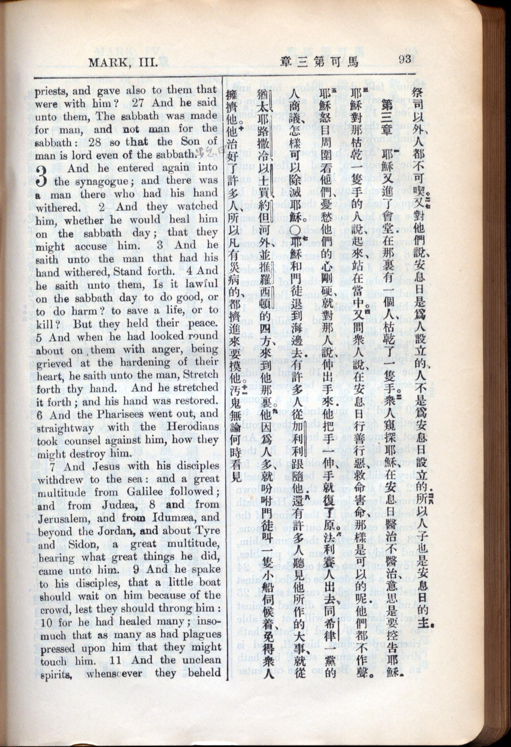1936年新約全書 馬可福音 2 章 27 節到 3 章 11 節