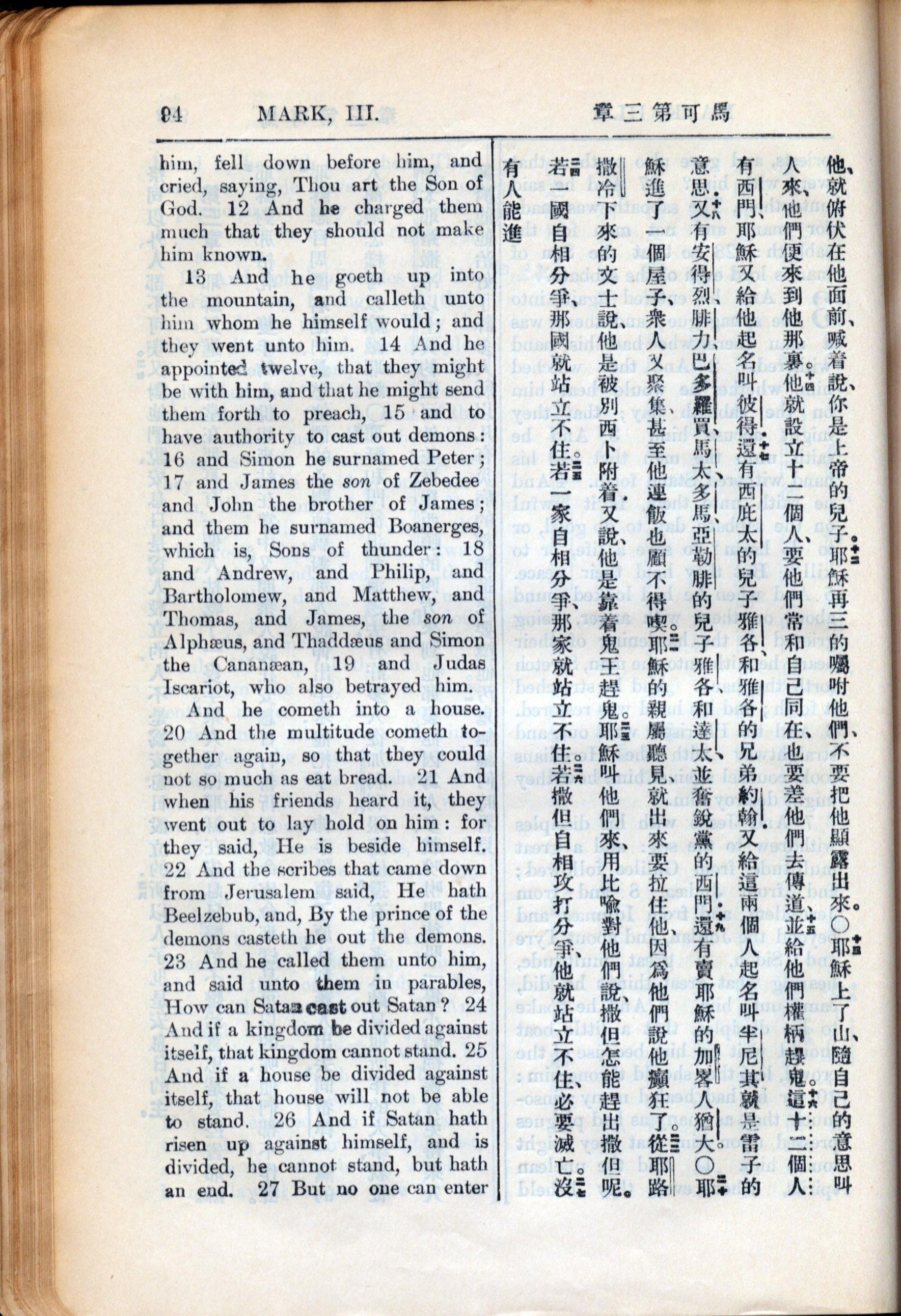 1936年新約全書 馬可福音 3 章 12 節到 3 章 26 節