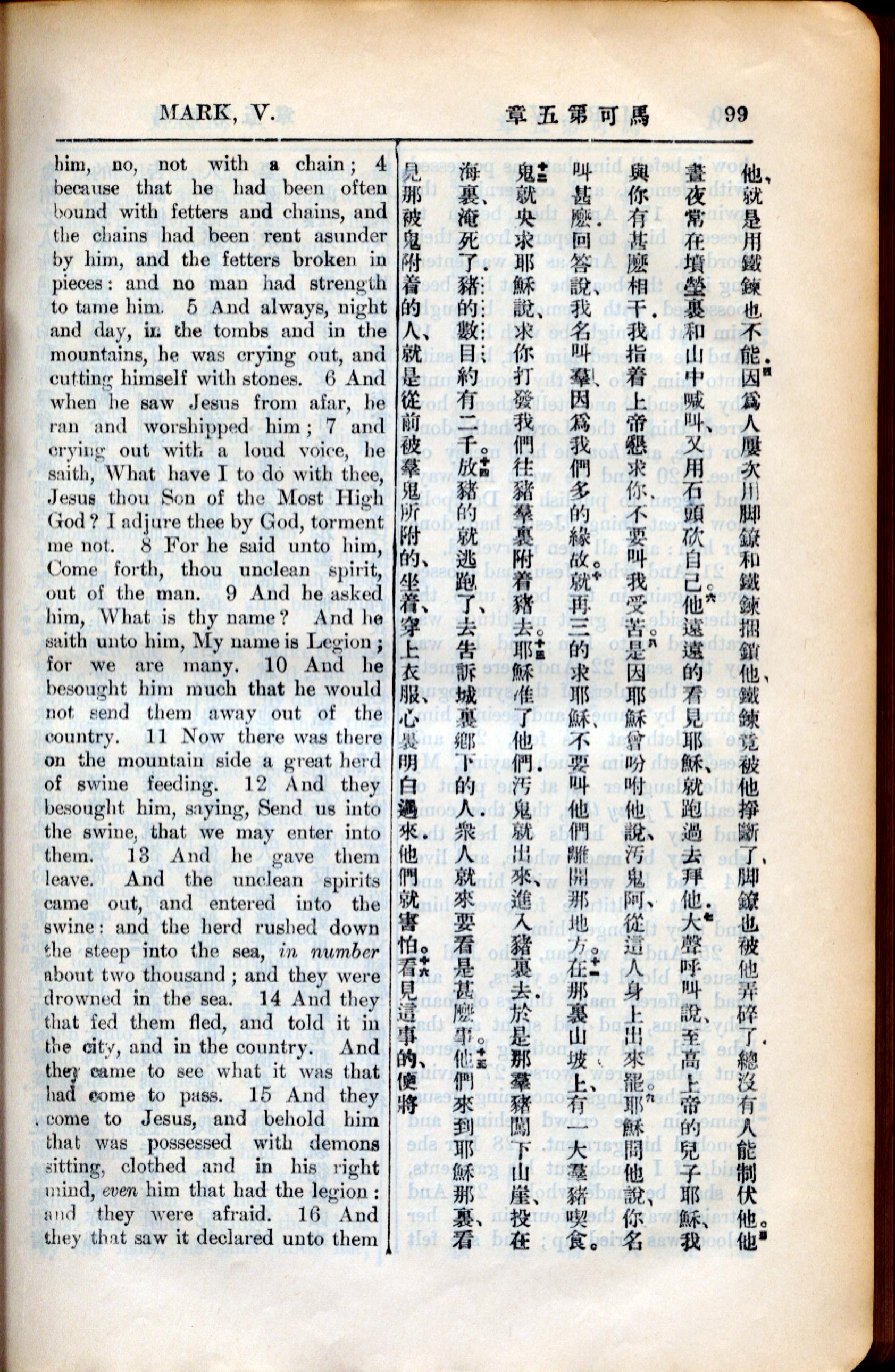 1936年新約全書 馬可福音 5 章 4 節到 5 章 16 節