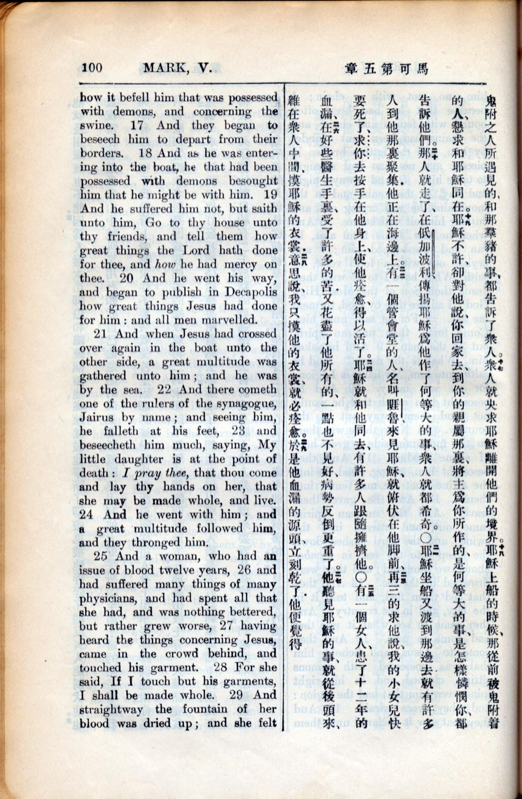 1936年新約全書 馬可福音 5 章 17 節到 5 章 29 節