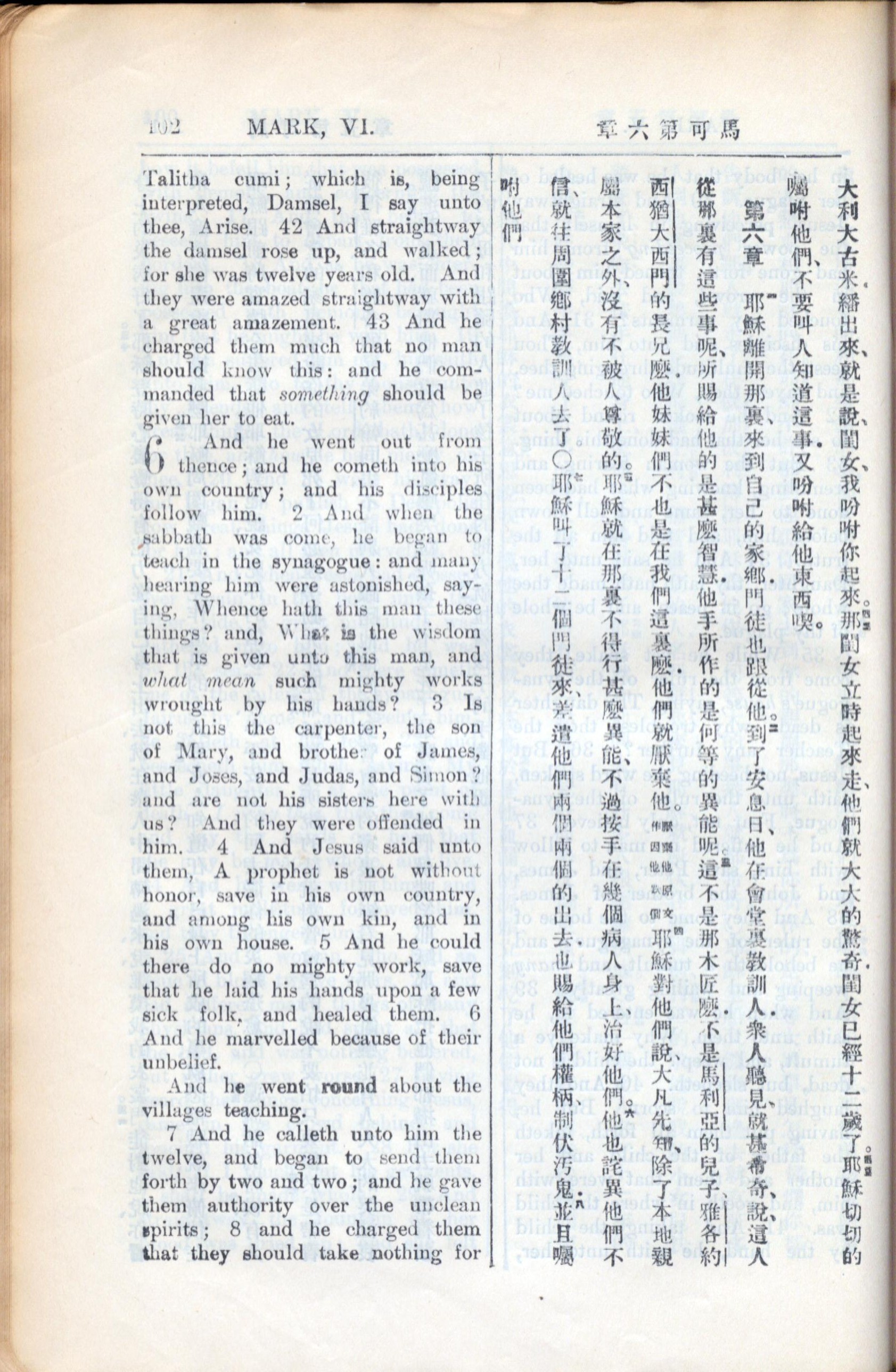 1936年新約全書 馬可福音 5 章 42 節到 6 章 8 節