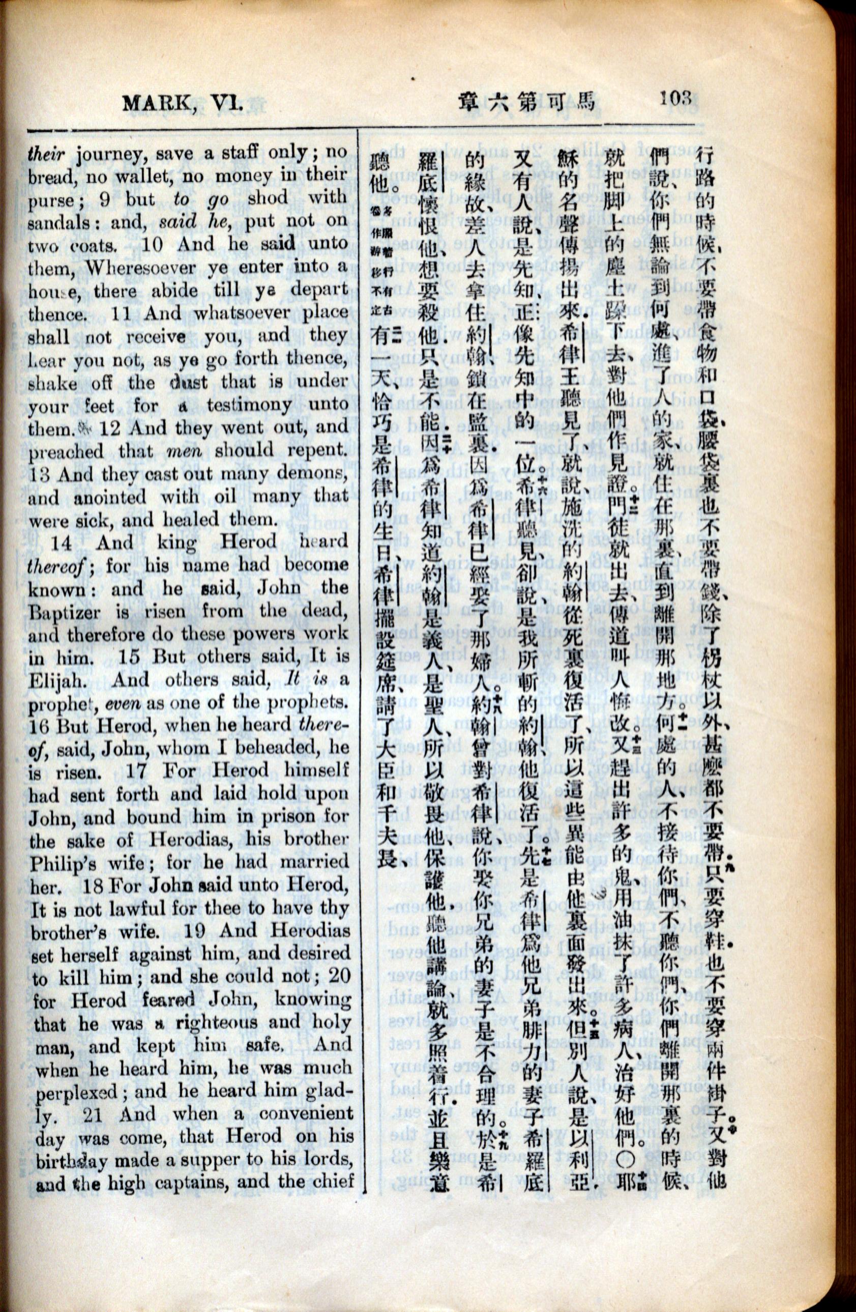 1936年新約全書 馬可福音 6 章 9 節到 6 章 21 節