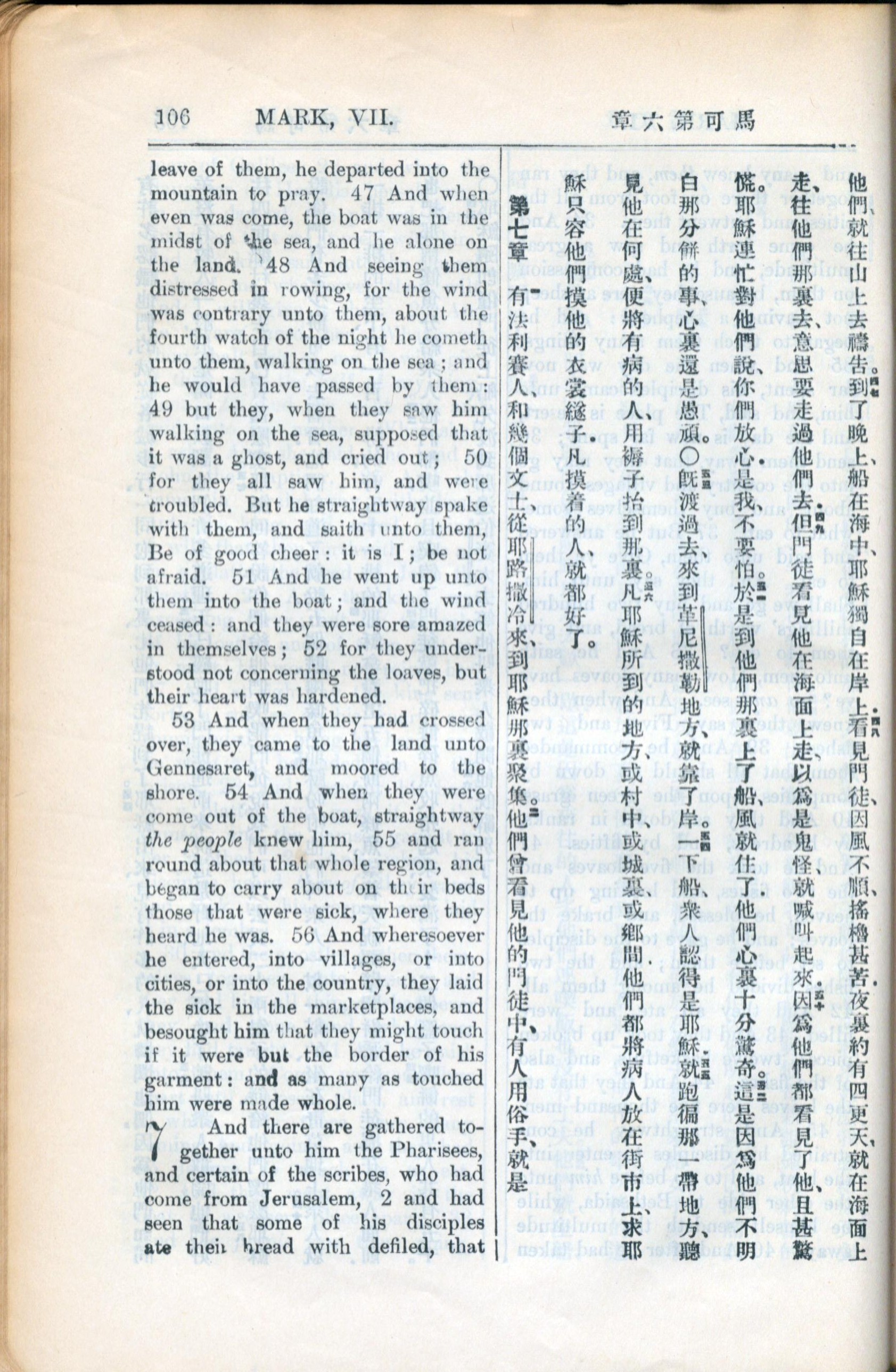 1936年新約全書 馬可福音 6 章 46 節到 7 章 2 節