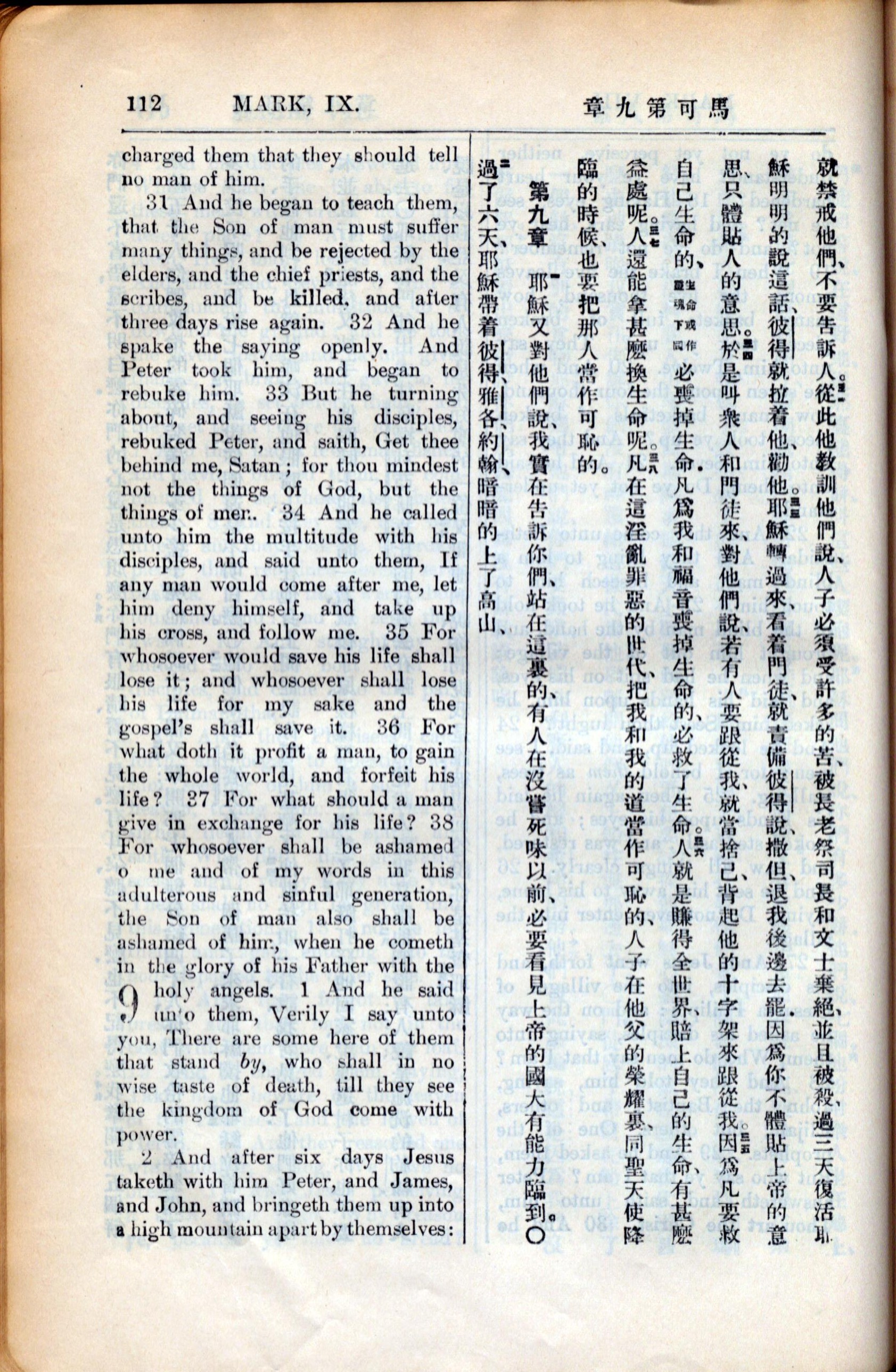 1936年新約全書 馬可福音 8 章 30 節到 9 章 2 節