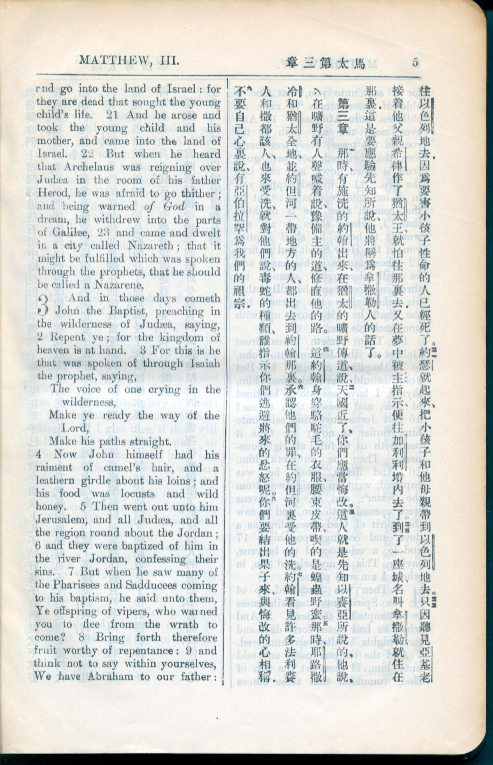 1936年新約全書 馬太福音 2 章 21 節到 3 章 9 節