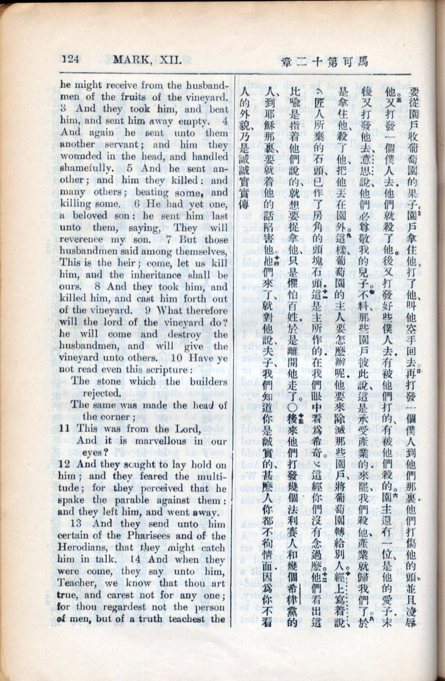 1936年新約全書 馬可福音 12 章 3 節到 12 章 14 節