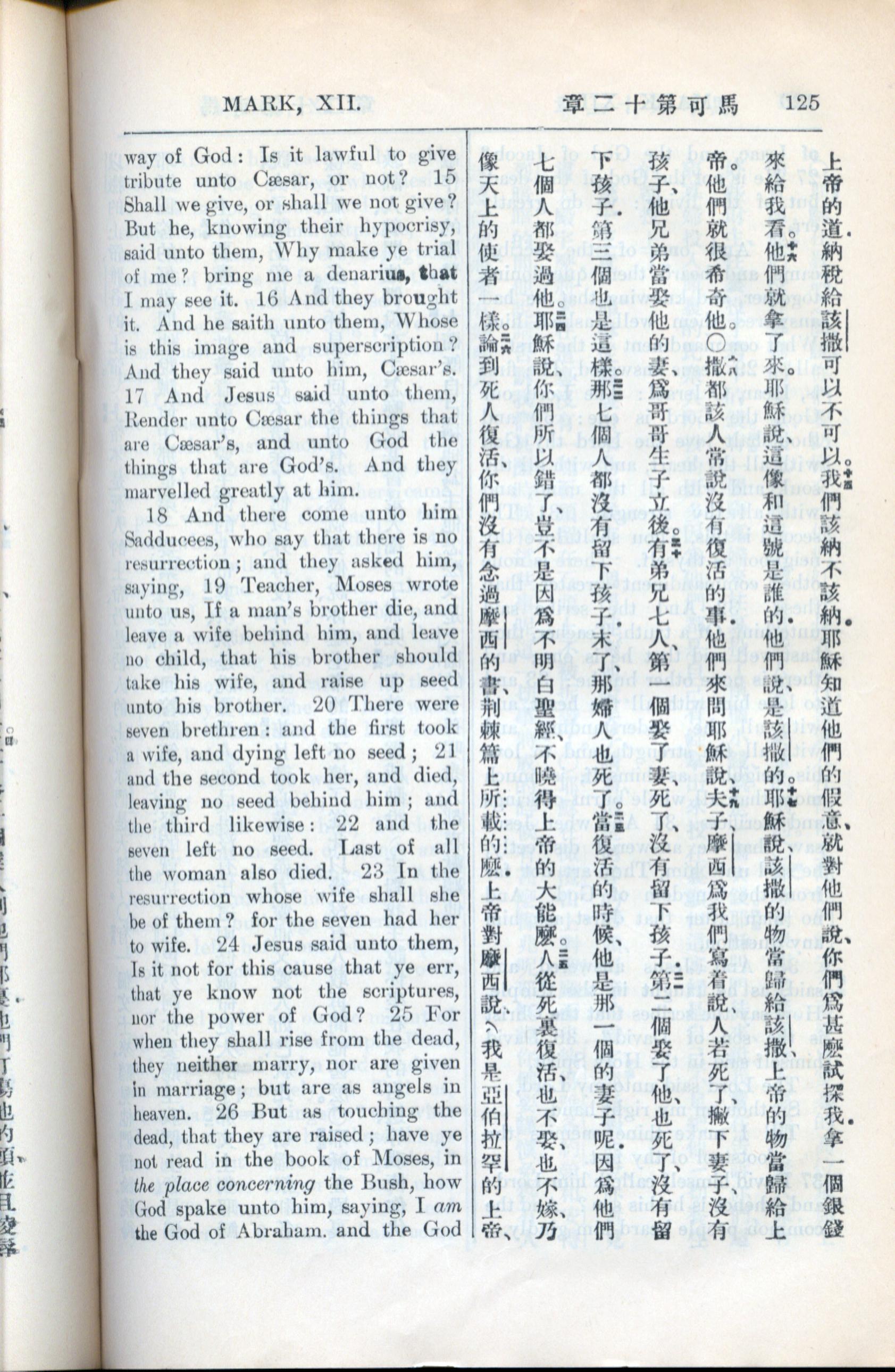 1936年新約全書 馬可福音 12 章 15 節到 12 章 26 節