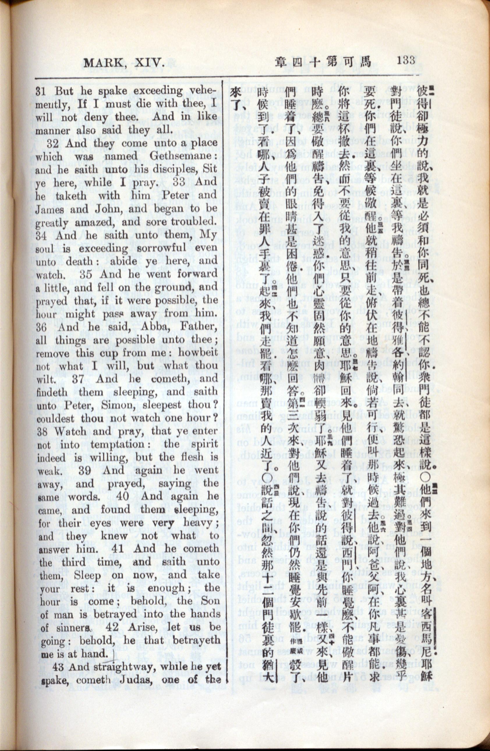 1936年新約全書 馬可福音 14 章 31 節到 14 章 43 節