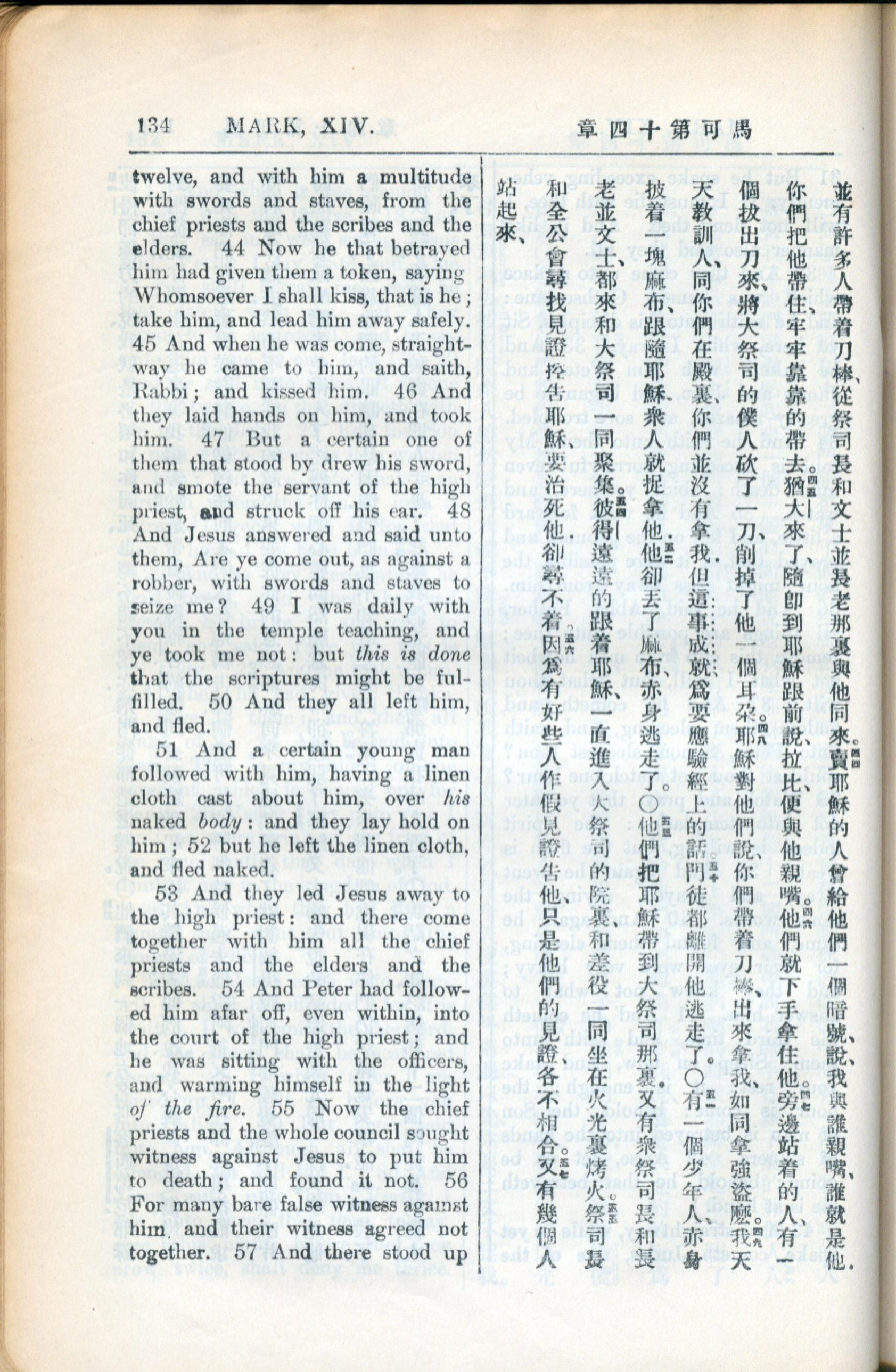 1936年新約全書 馬可福音 14 章 44 節到 14 章 56 節