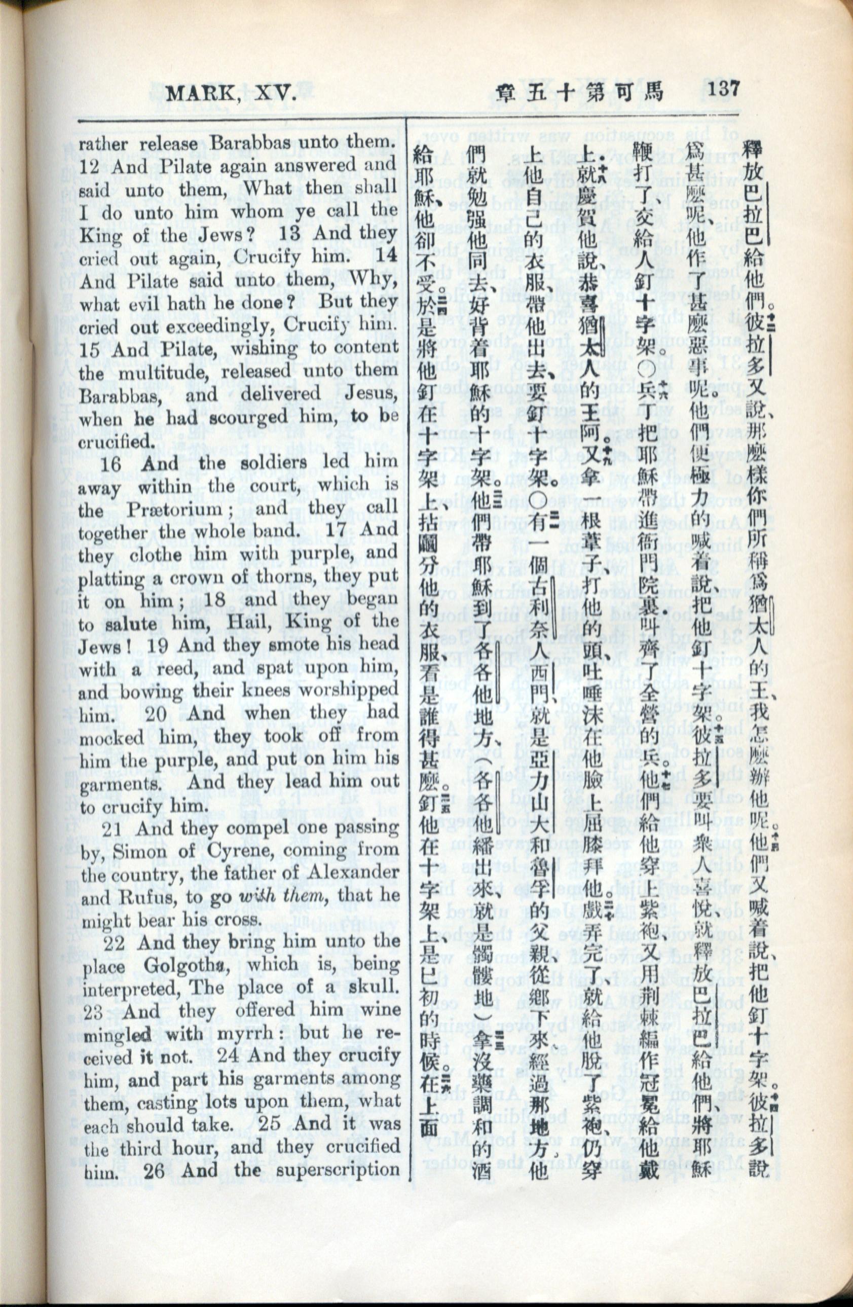 1936年新約全書 馬可福音 15 章 12 節到 15 章 25 節