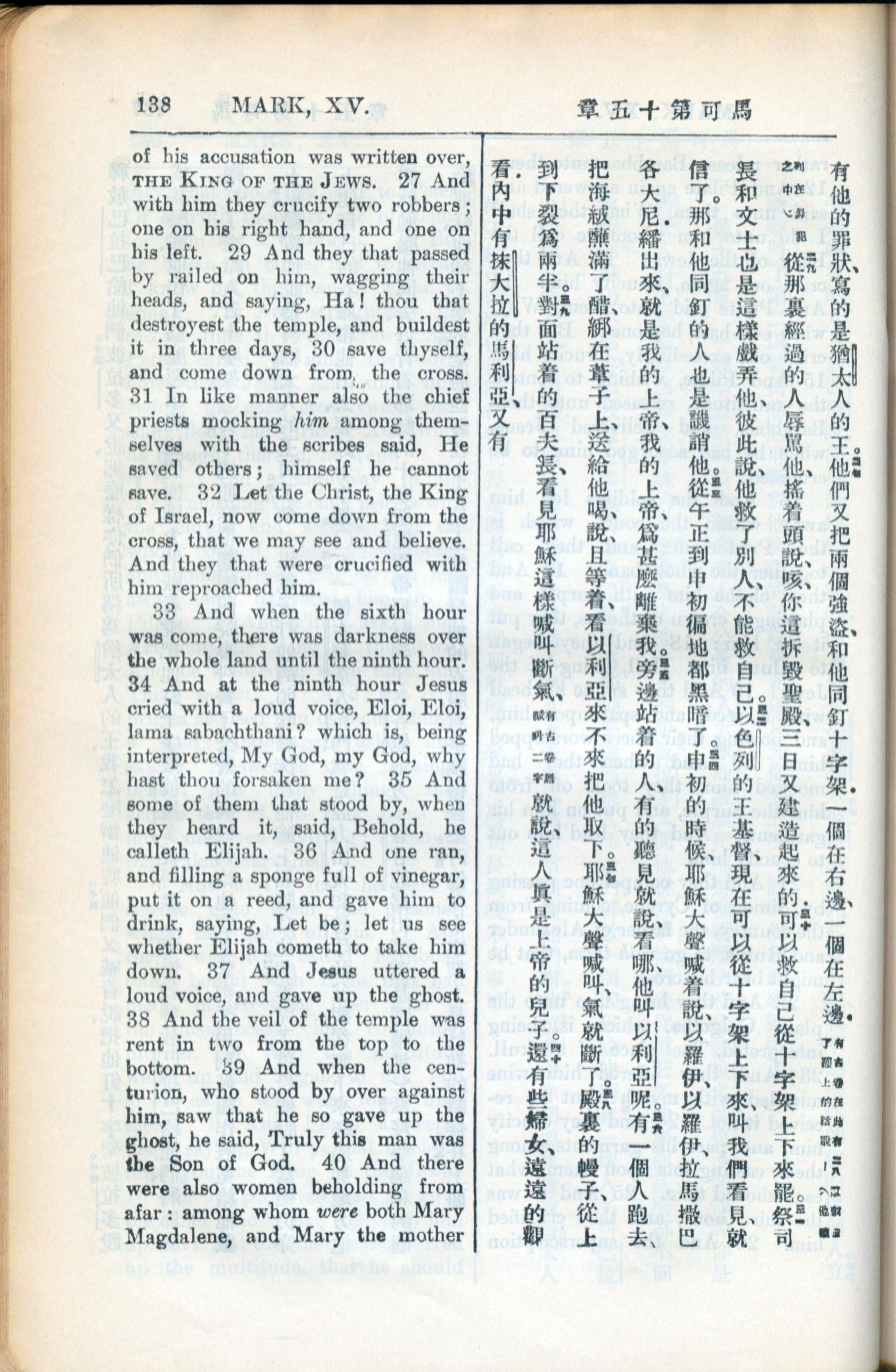 1936年新約全書 馬可福音 15 章 26 節到 15 章 40 節