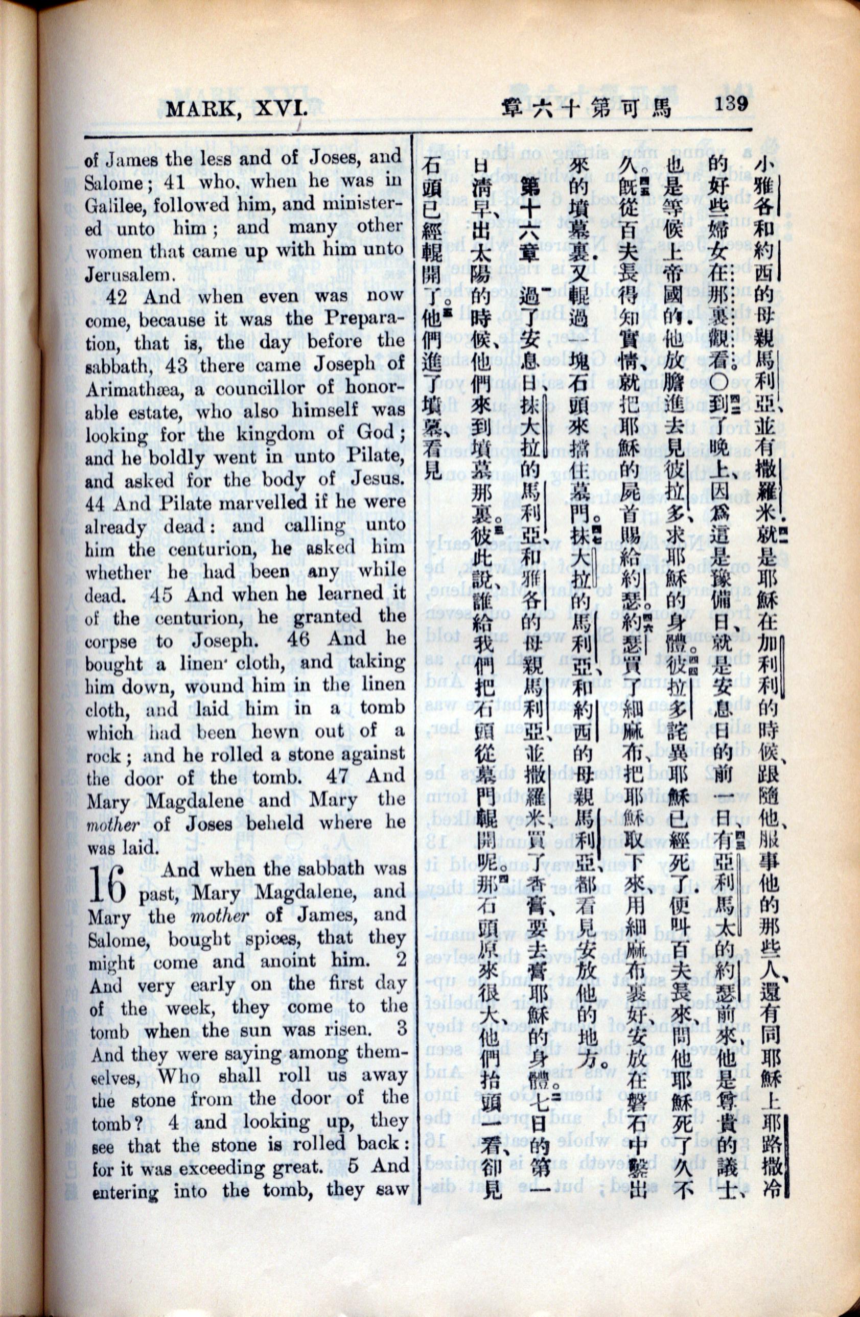 1936年新約全書 馬可福音 15 章 41 節到 16 章 5 節