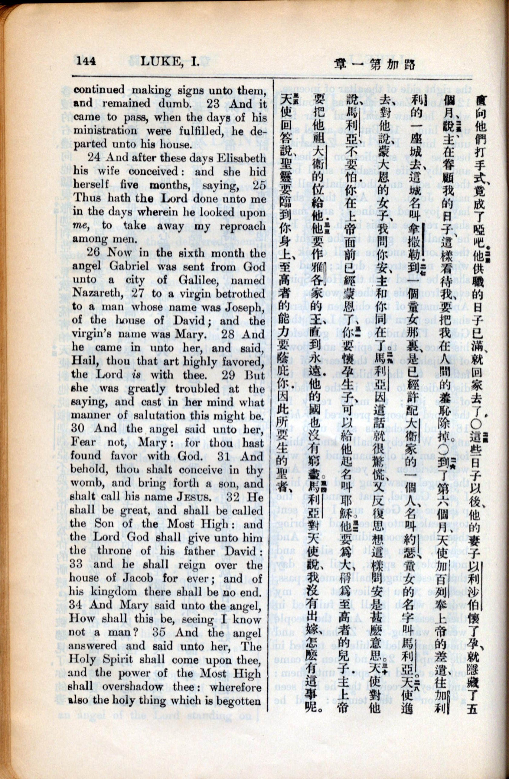 1936年新約全書 路加福音 1 章 23 節到 1 章 35 節