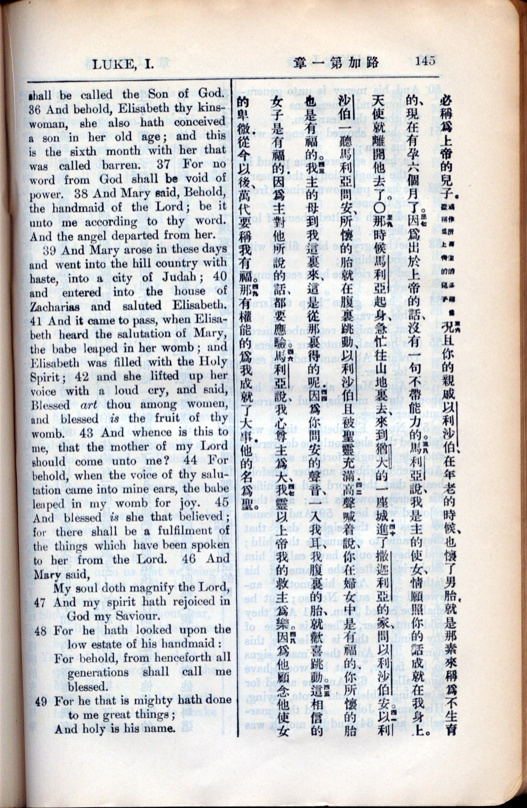 1936年新約全書 路加福音 1 章 36 節到 1 章 49 節