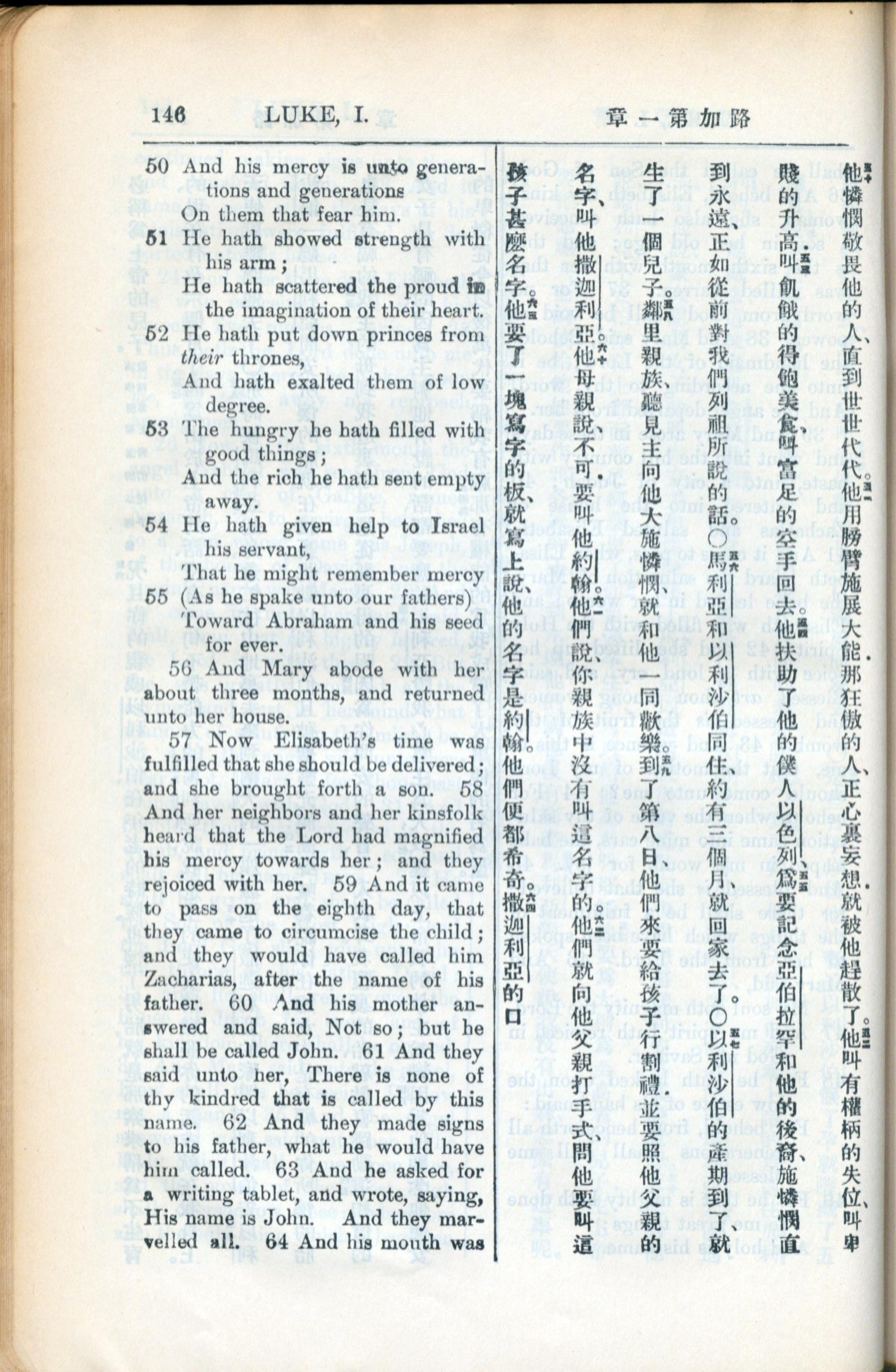1936年新約全書 路加福音 1 章 50 節到 1 章 63 節