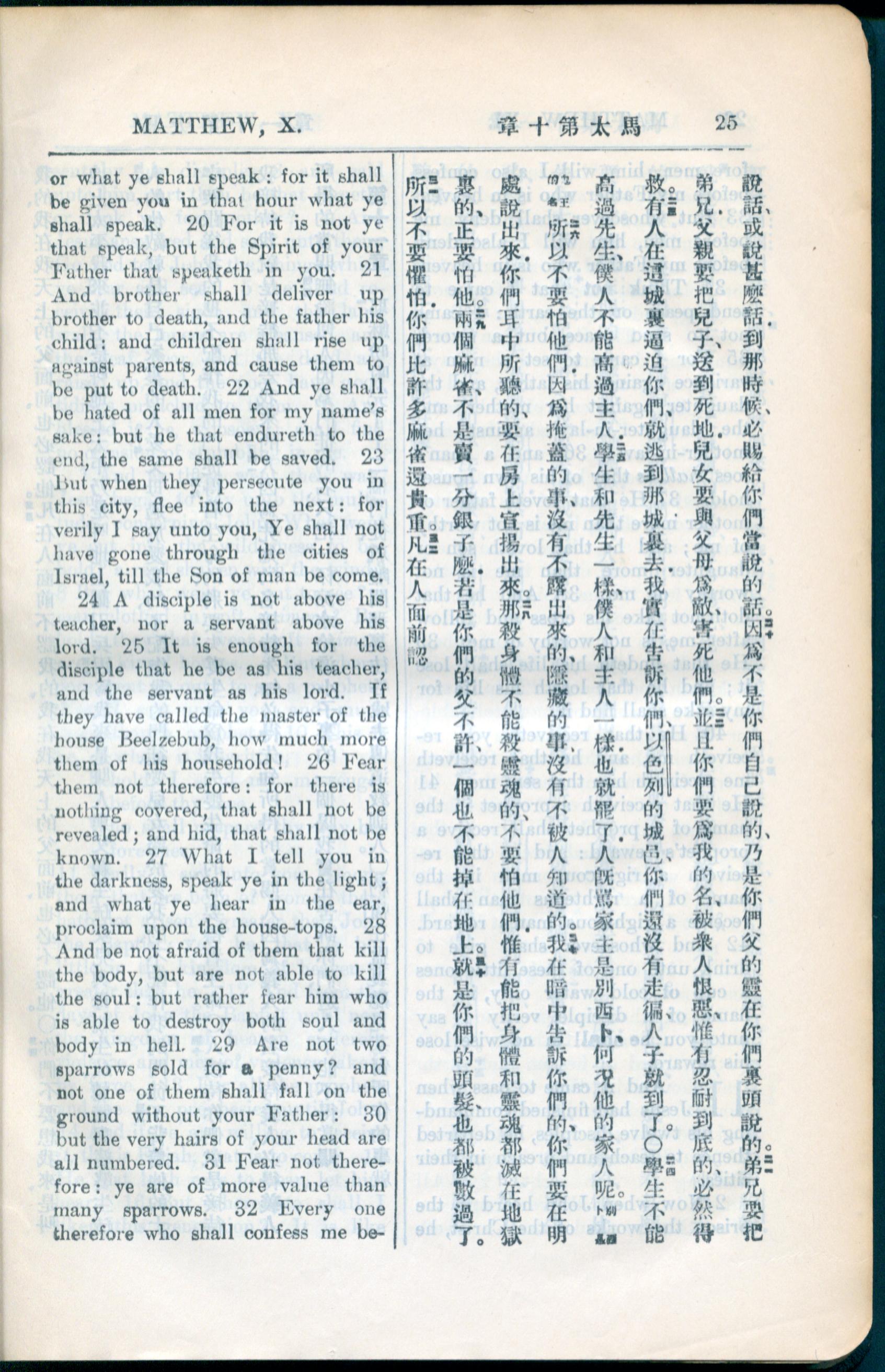 1936年新約全書 馬太福音 10 章 20 節到 10 章 32 節