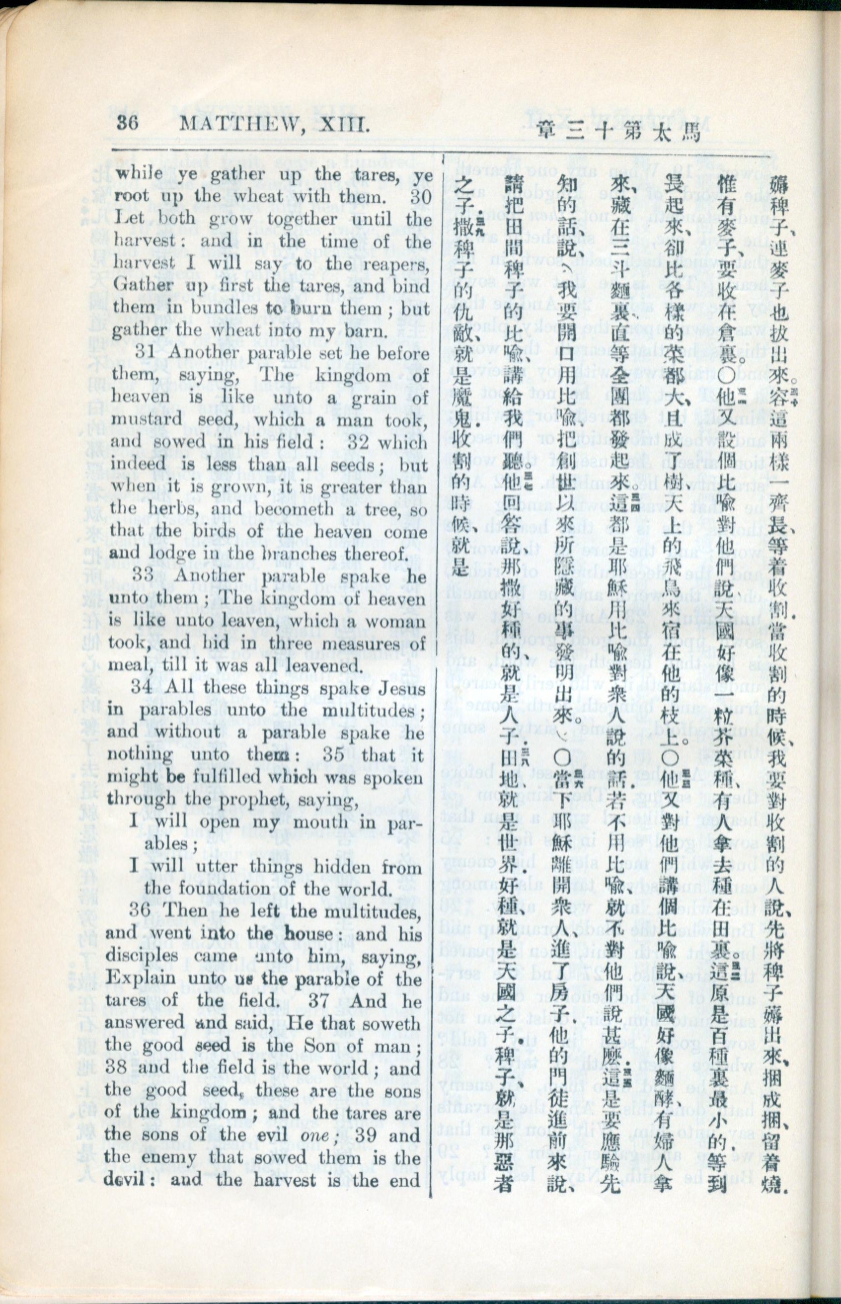 1936年新約全書 馬太福音 13 章 30 節到 13 章 39 節