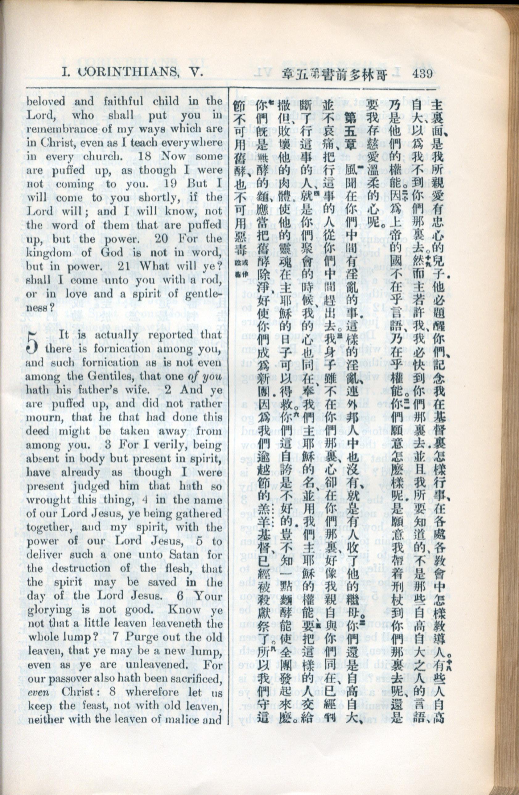 1936年新約全書 哥林多前書 4 章 18 節到 5 章 8 節