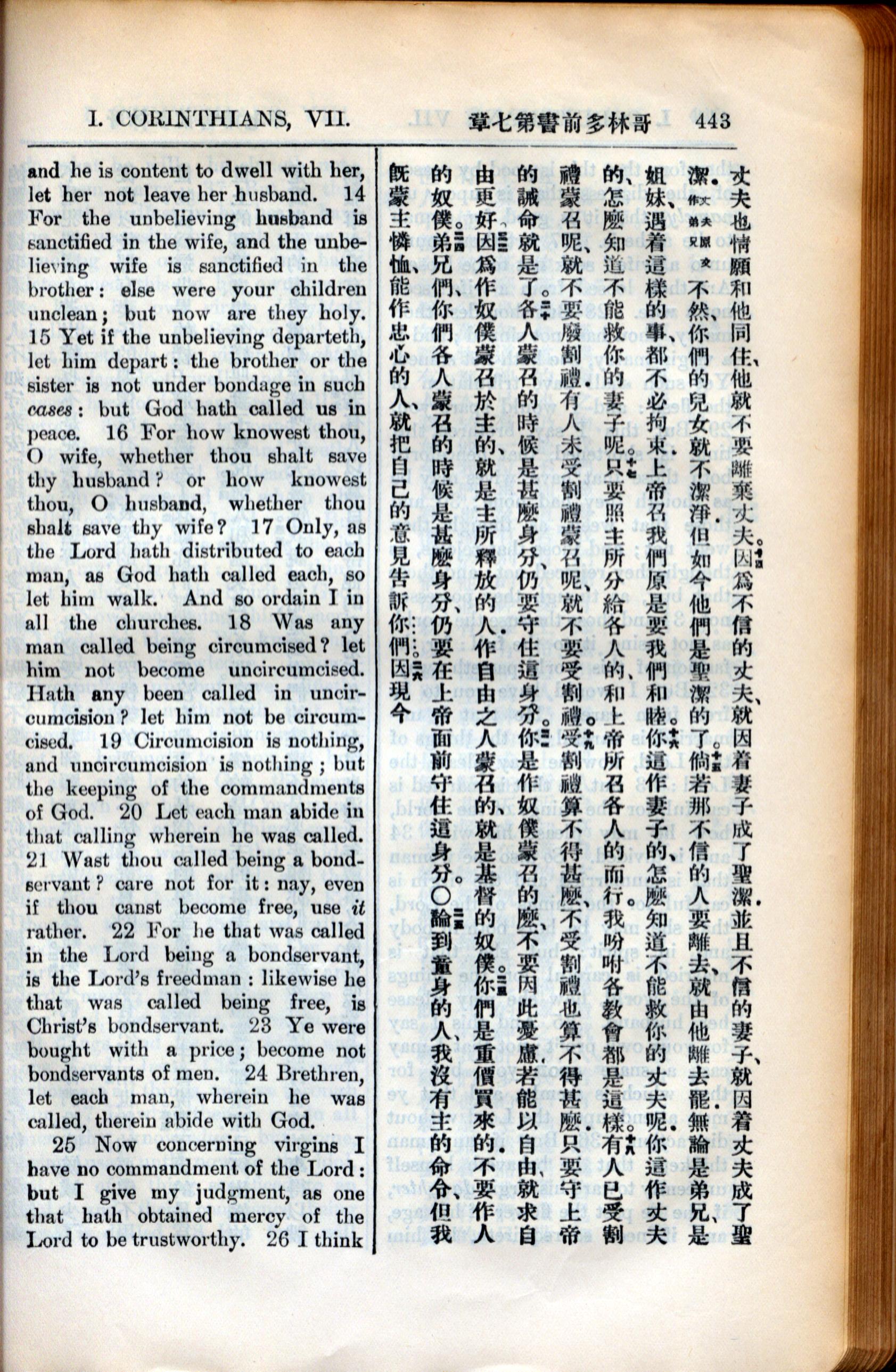 1936年新約全書 哥林多前書 7 章 14 節到 7 章 25 節