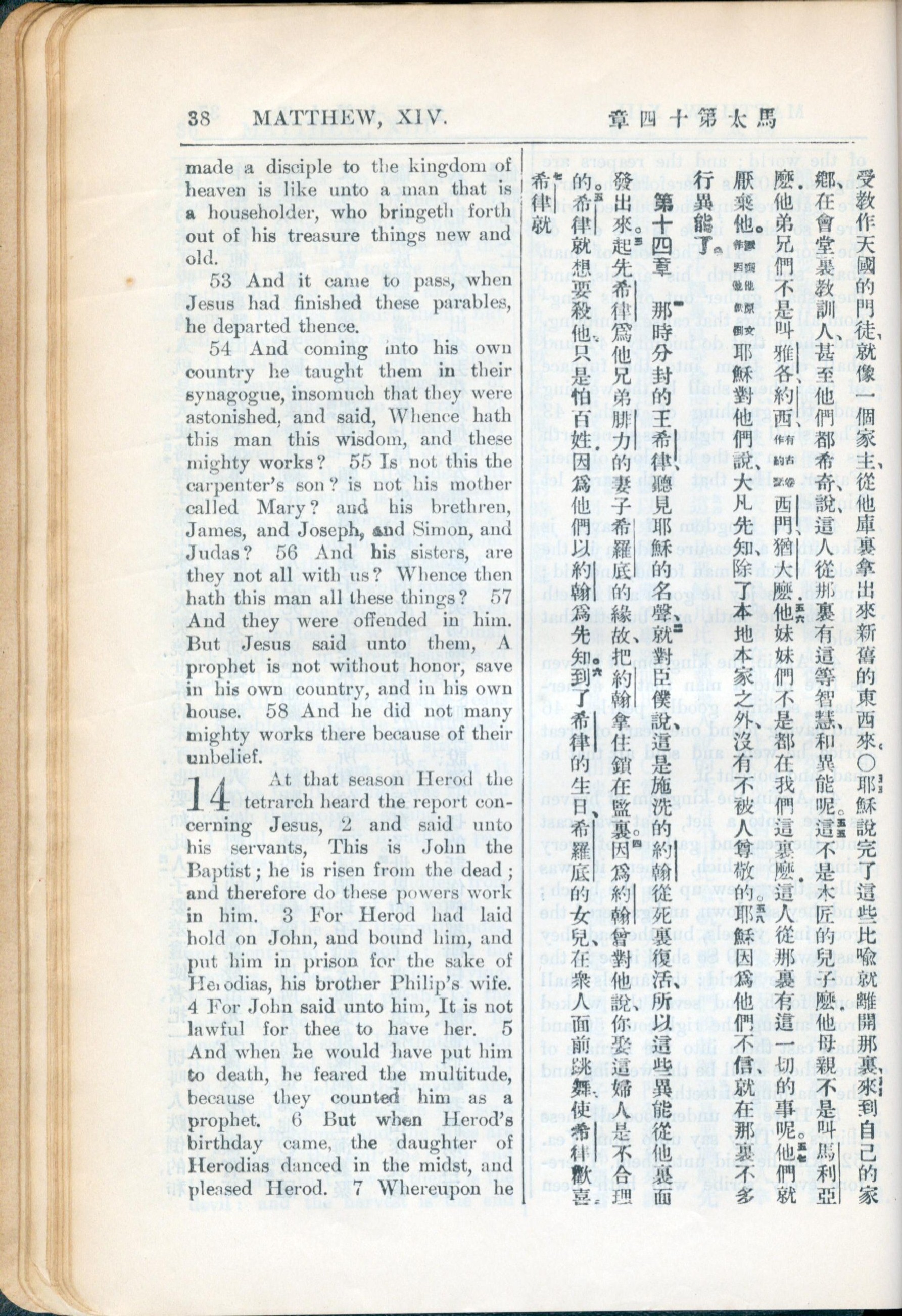 1936年新約全書 馬太福音 13 章 52 節到 14 章 6 節