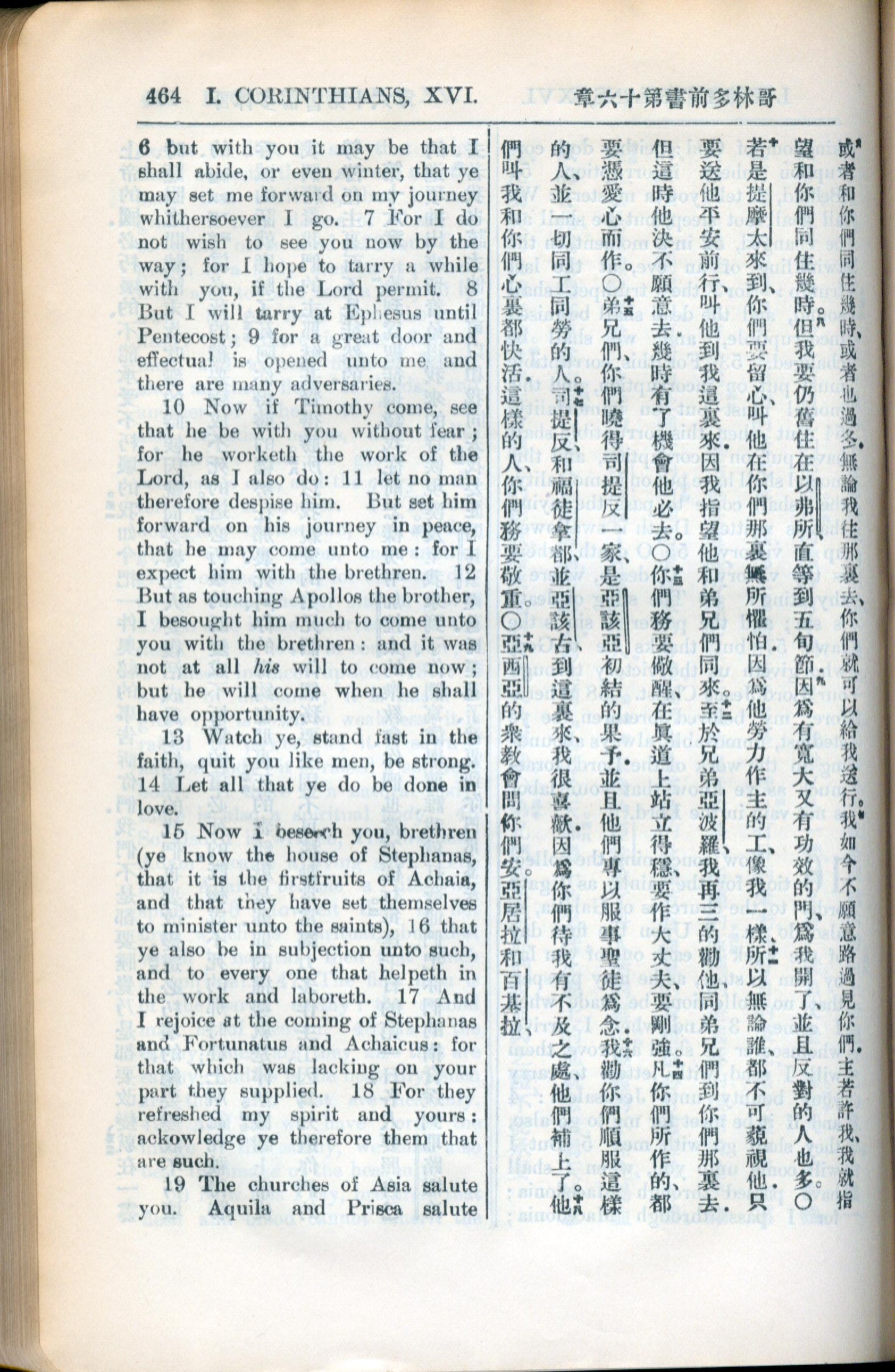 1936年新約全書 哥林多前書 16 章 6 節到 16 章 19 節