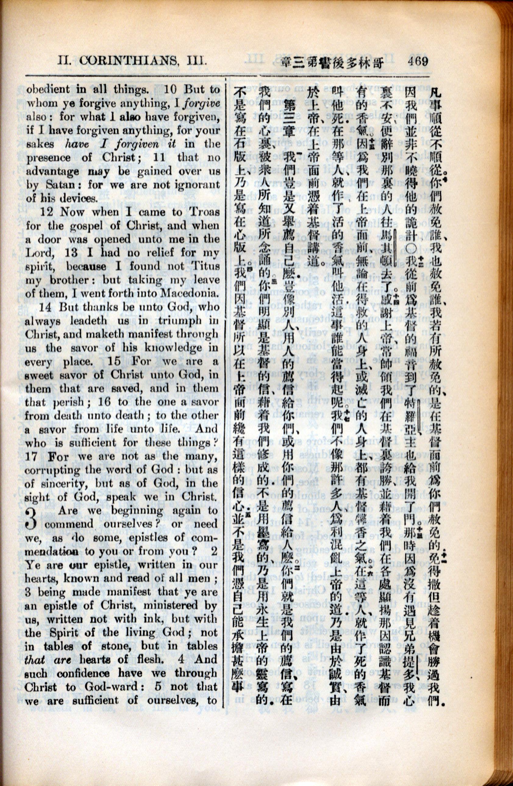 1936年新約全書 哥林多後書 2 章 10 節到 3 章 5 節