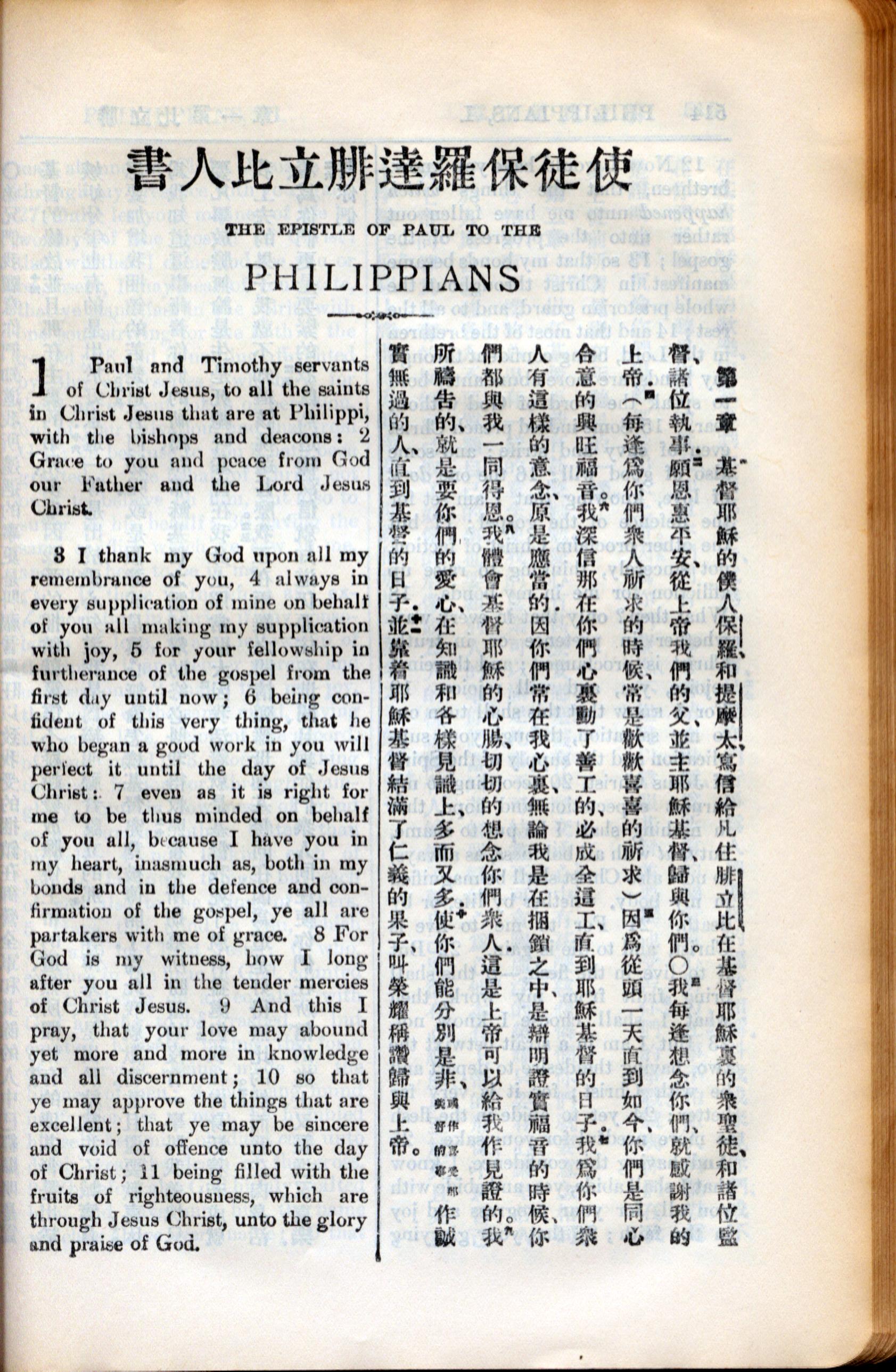 1936年新約全書 腓立比書 1 章 1 節到 1 章 11 節