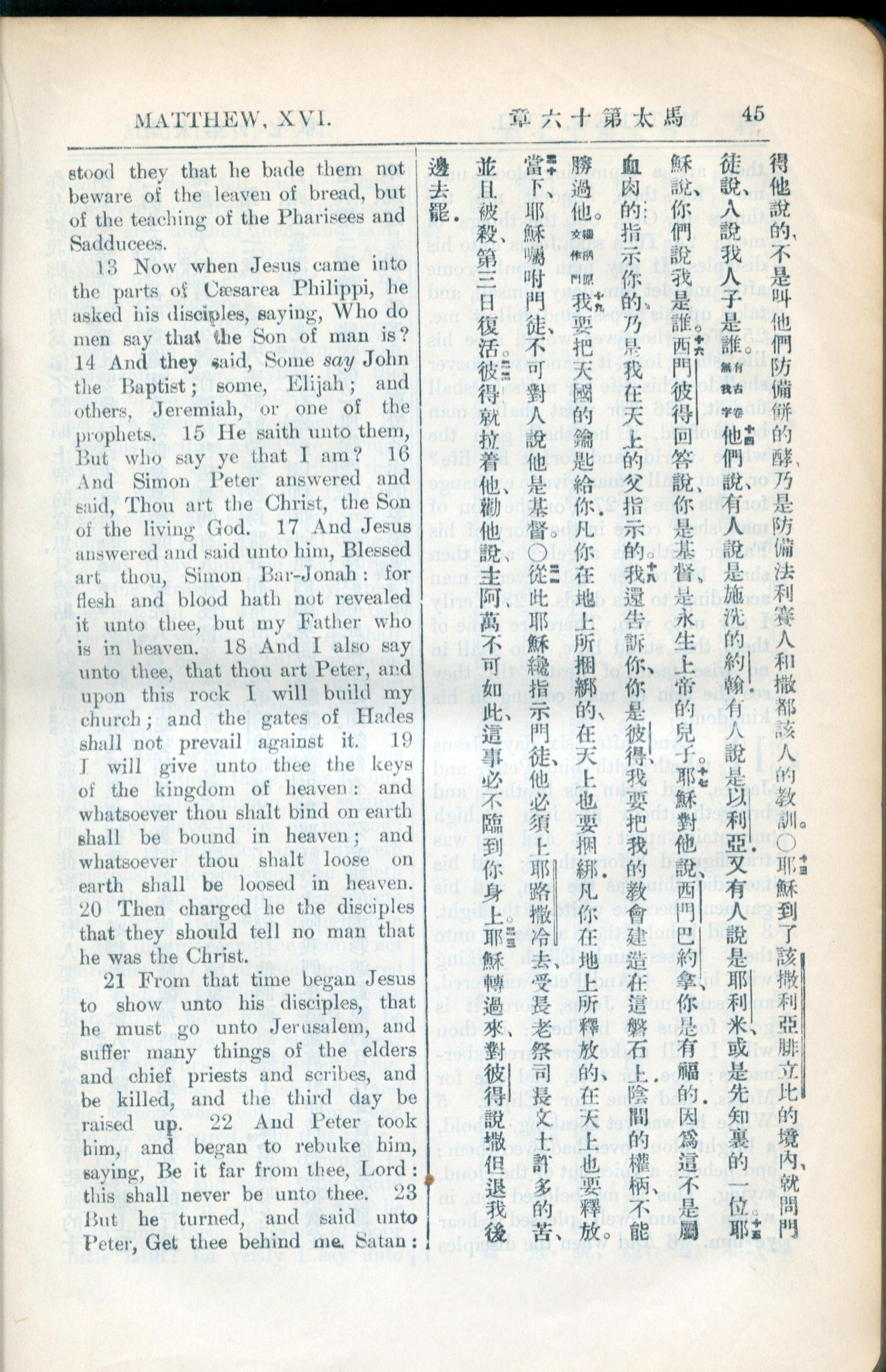 1936年新約全書 馬太福音 16 章 12 節到 16 章 23 節
