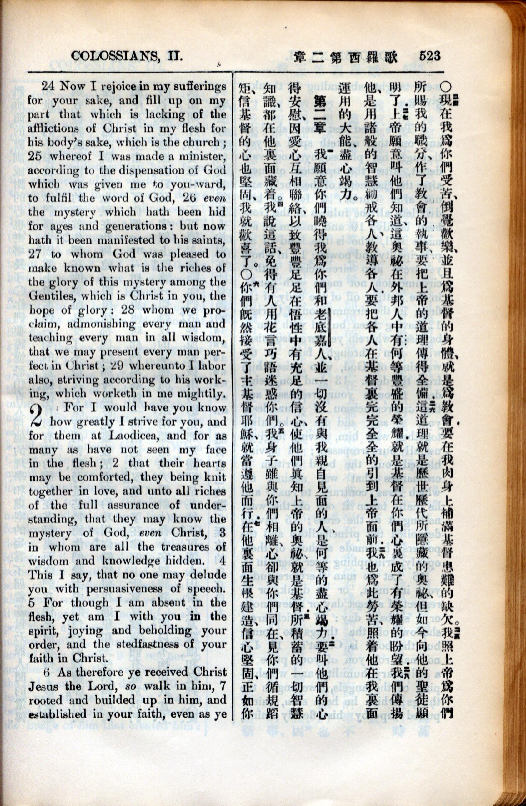 1936年新約全書 歌羅西書 1 章 24 節到 2 章 7 節