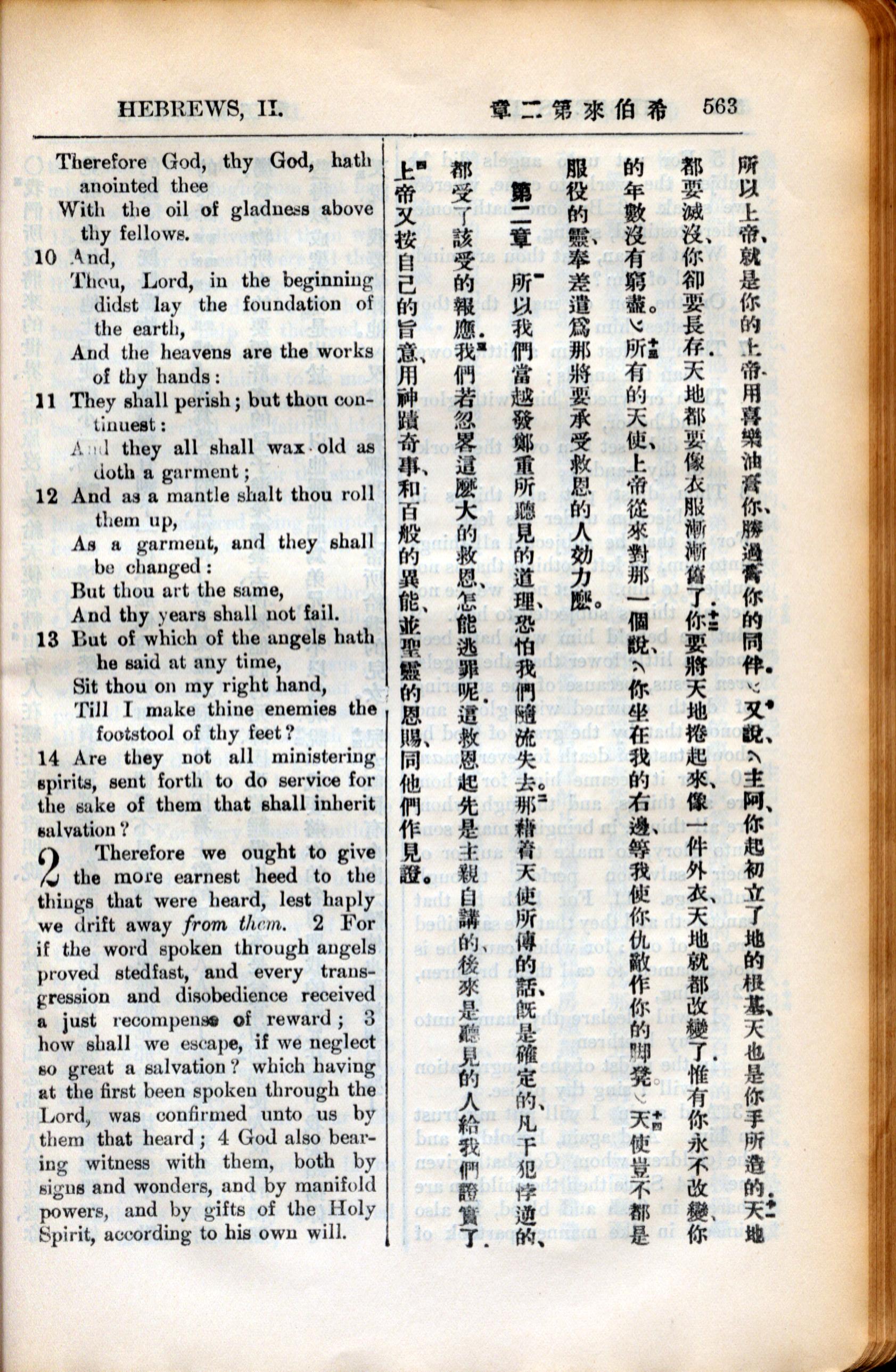 1936年新約全書 希伯來書 1 章 10 節到 2 章 4 節
