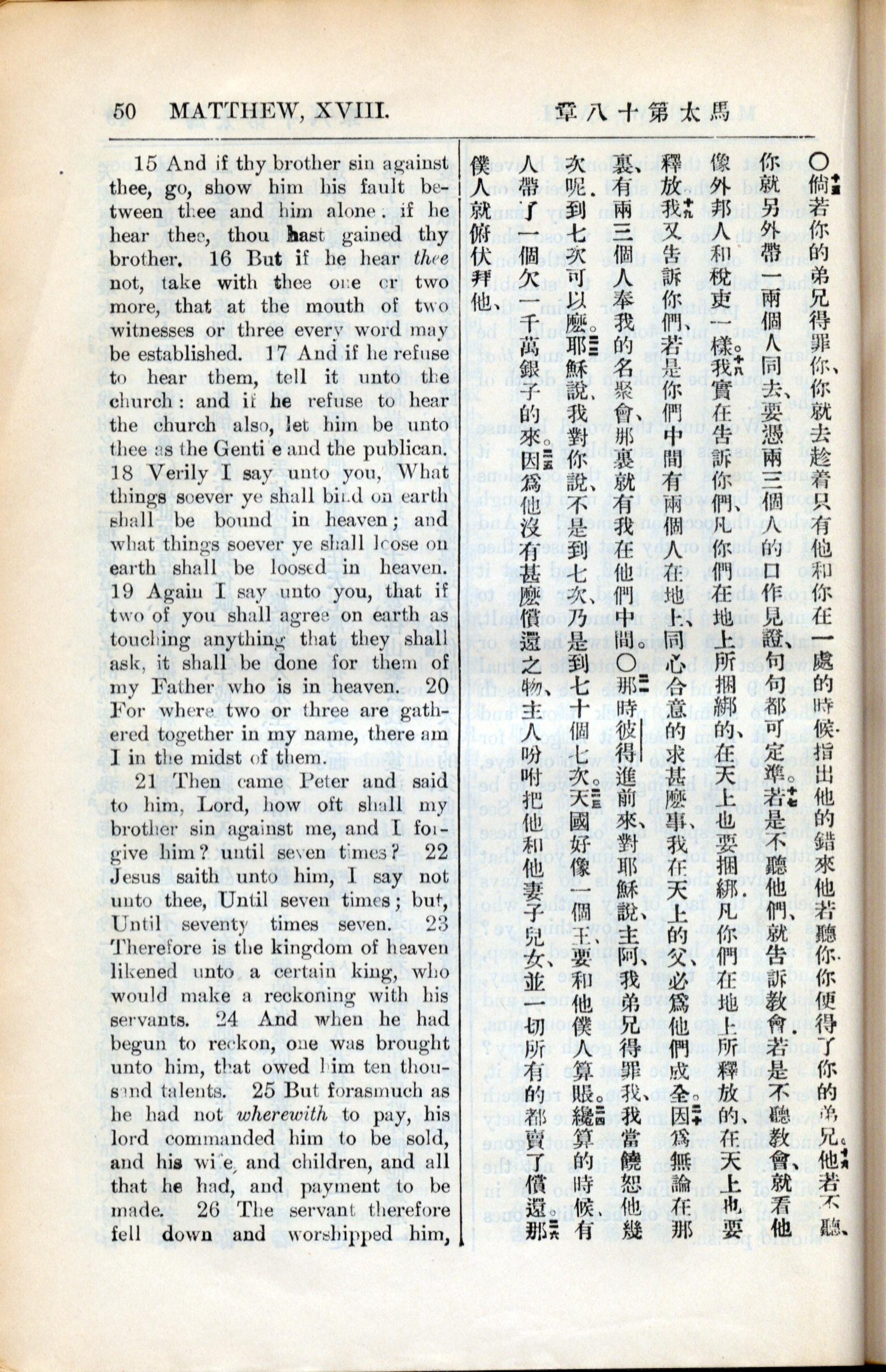 1936年新約全書 馬太福音 18 章 15 節到 18 章 26 節