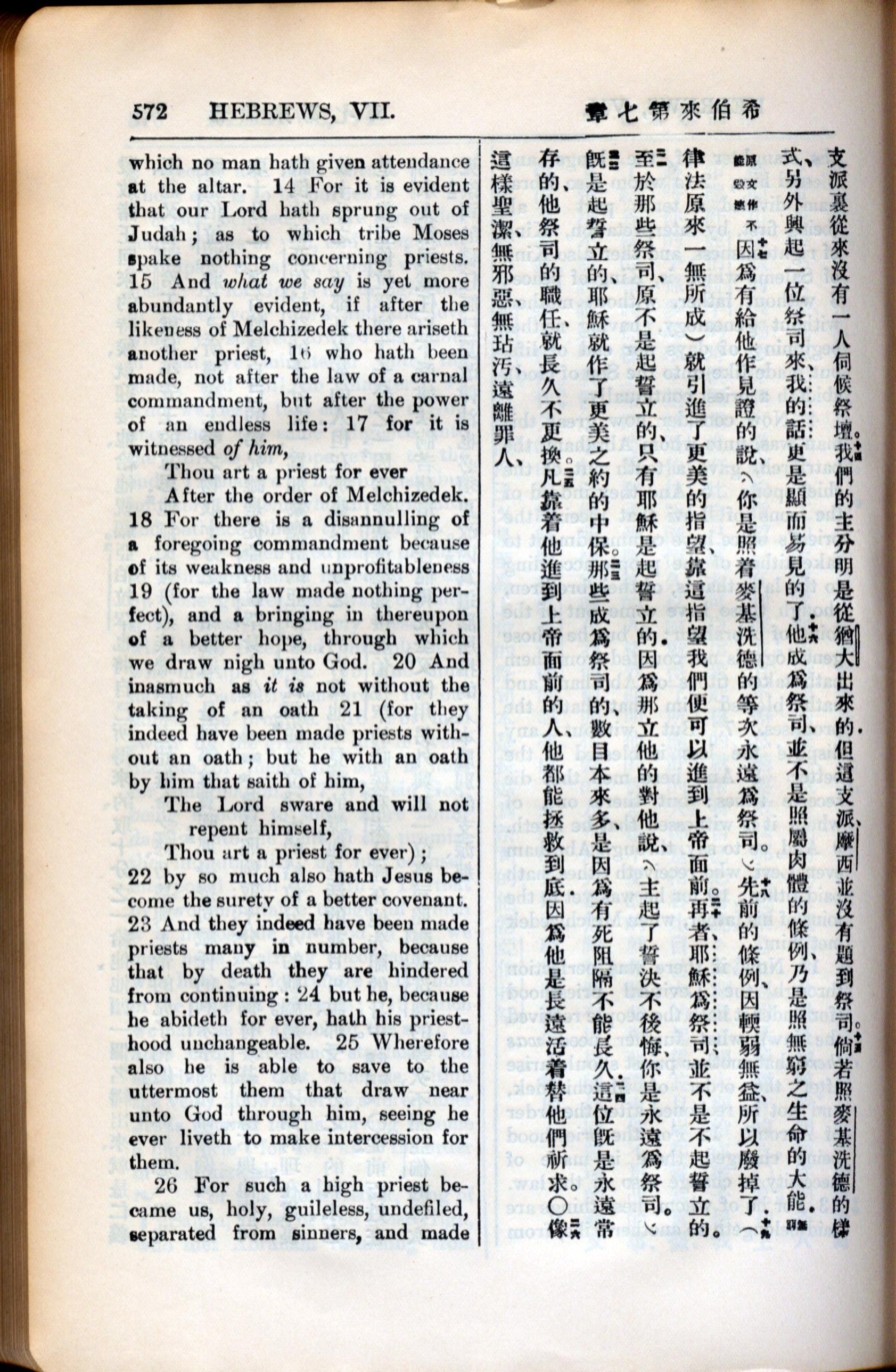 1936年新約全書 希伯來書 7 章 14 節到 7 章 26 節