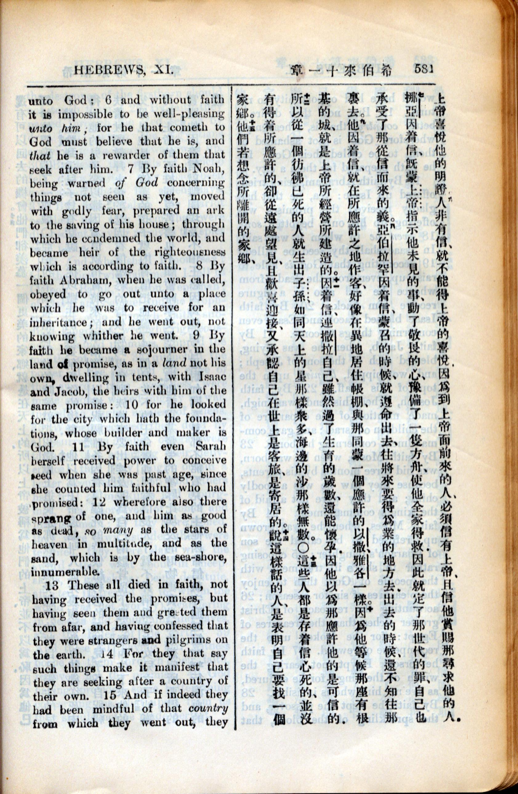 1936年新約全書 希伯來書 11 章 6 節到 11 章 15 節