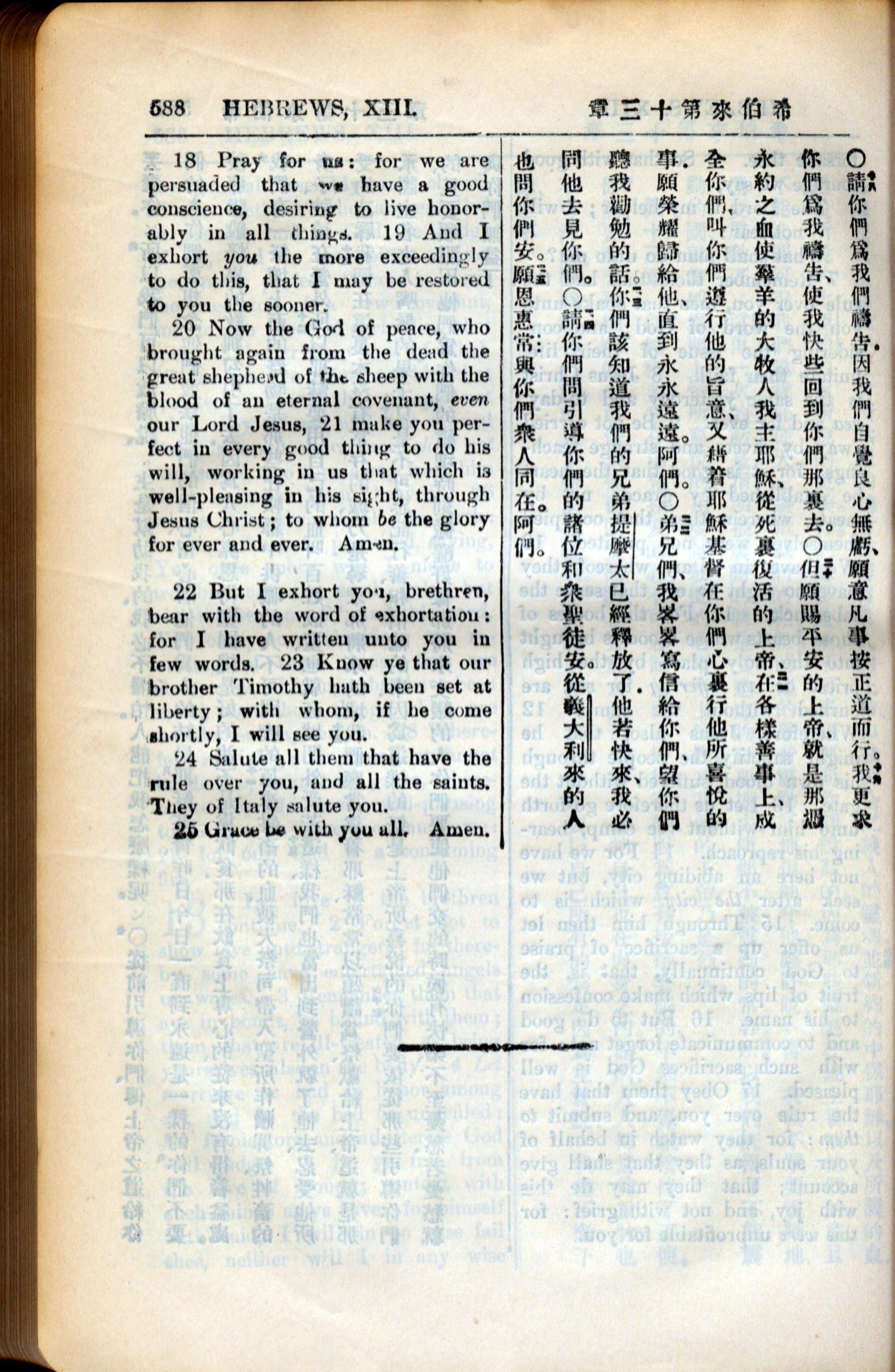 1936年新約全書 希伯來書 13 章 18 節到 13 章 25 節