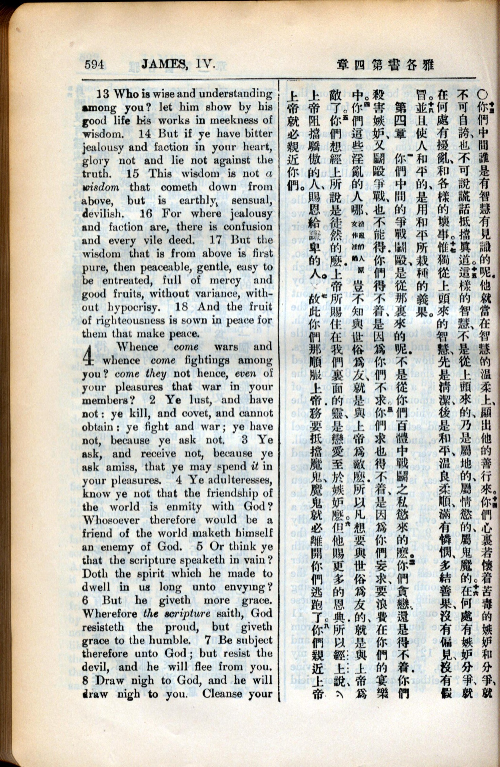 1936年新約全書 雅各書 3 章 13 節到 4 章 8 節