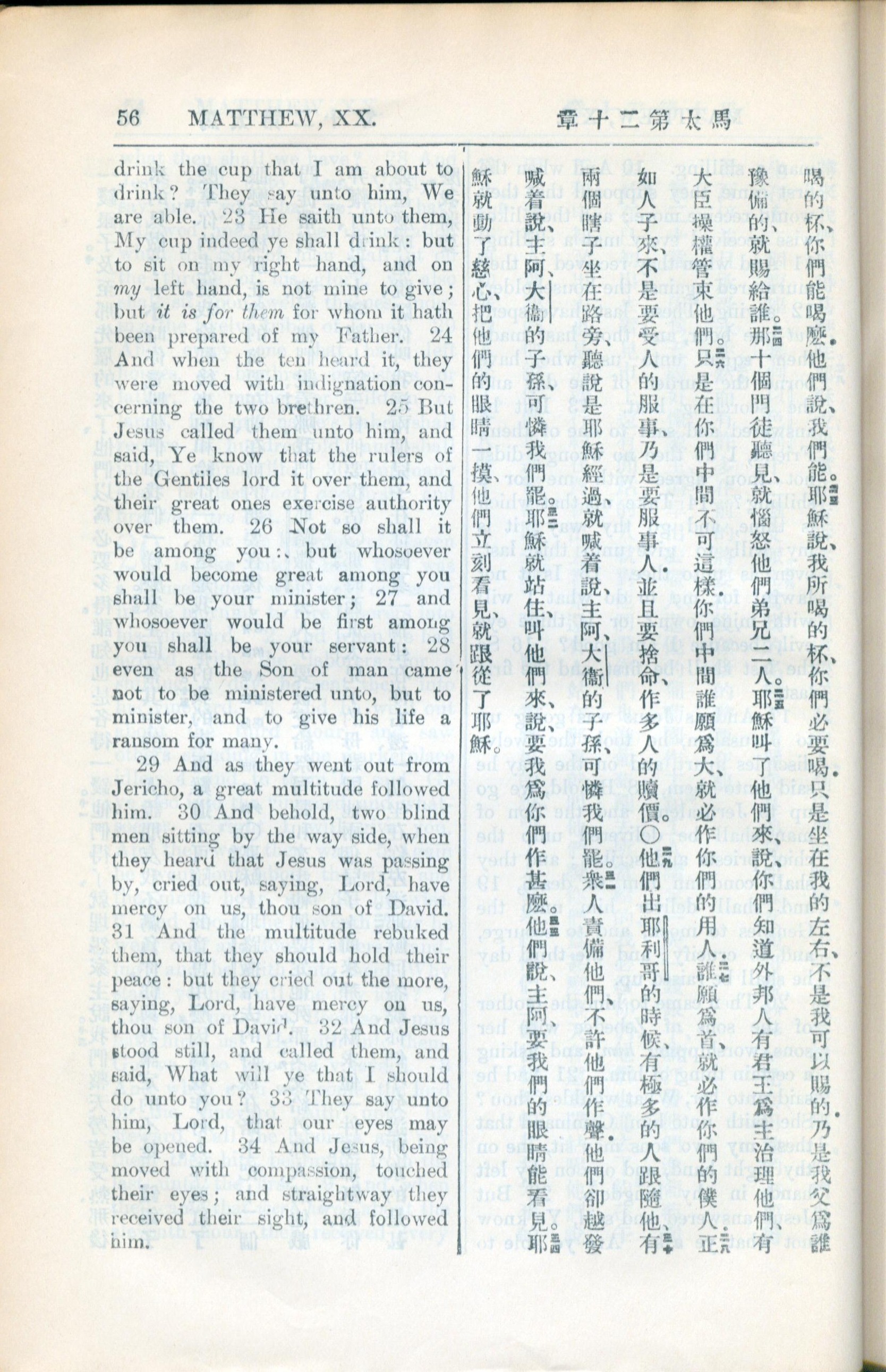 1936年新約全書 馬太福音 20 章 23 節到 20 章 34 節