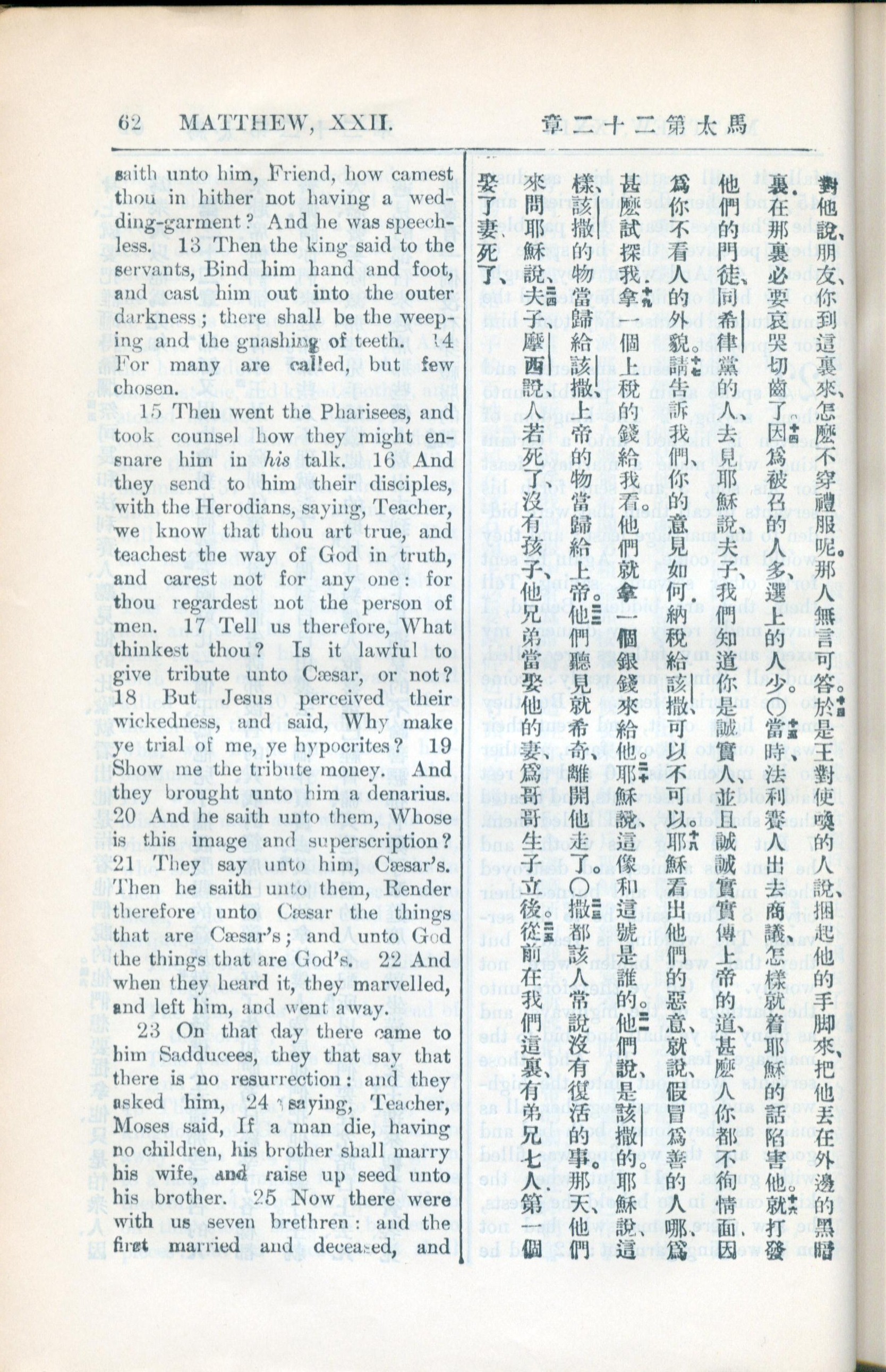 1936年新約全書 馬太福音 22 章 12 節到 22 章 25 節