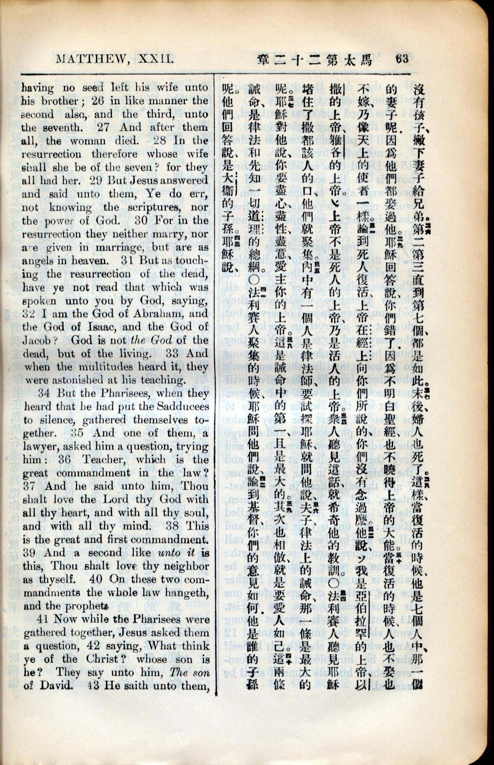 1936年新約全書 馬太福音 22 章 26 節到 22 章 42 節