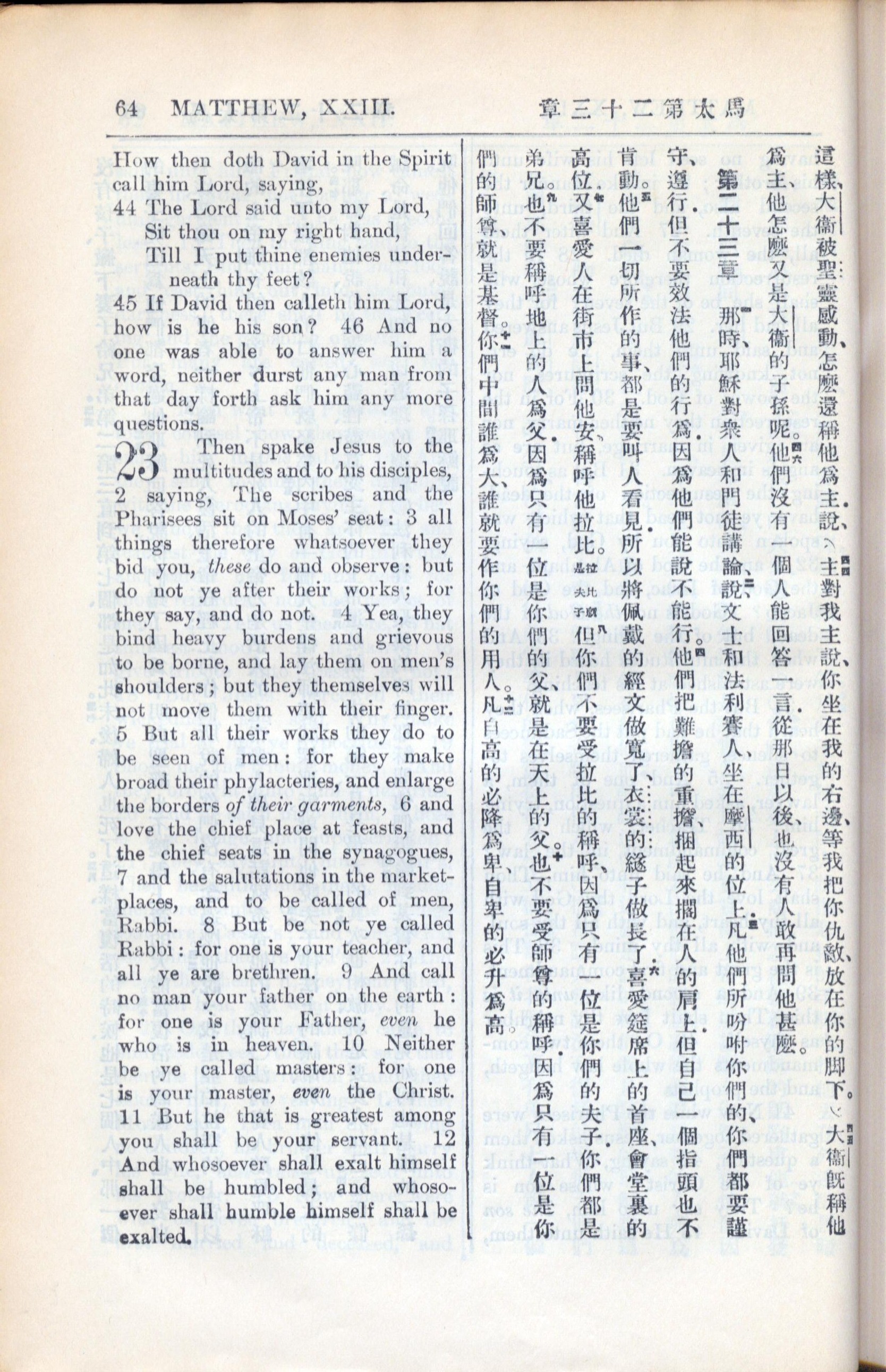 1936年新約全書 馬太福音 22 章 43 節到 23 章 12 節