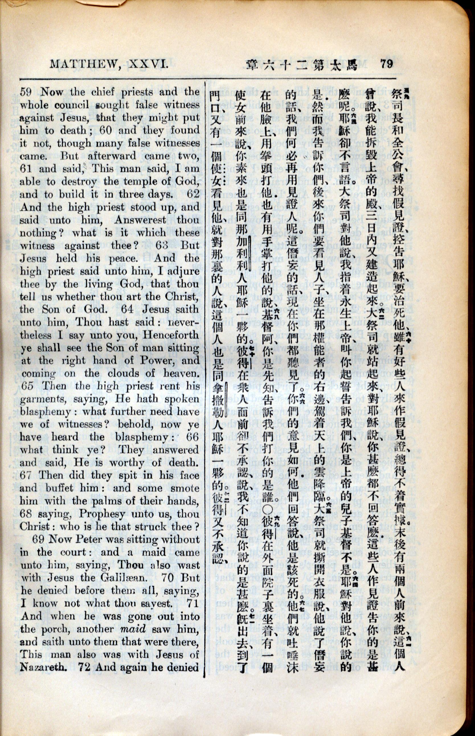 1936年新約全書 馬太福音 26 章 59 節到 26 章 71 節