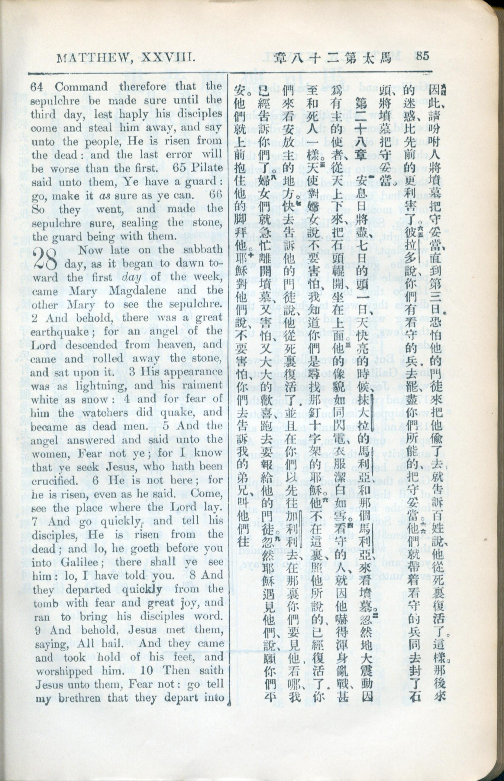 1936年新約全書 馬太福音 27 章 64 節到 28 章 10 節