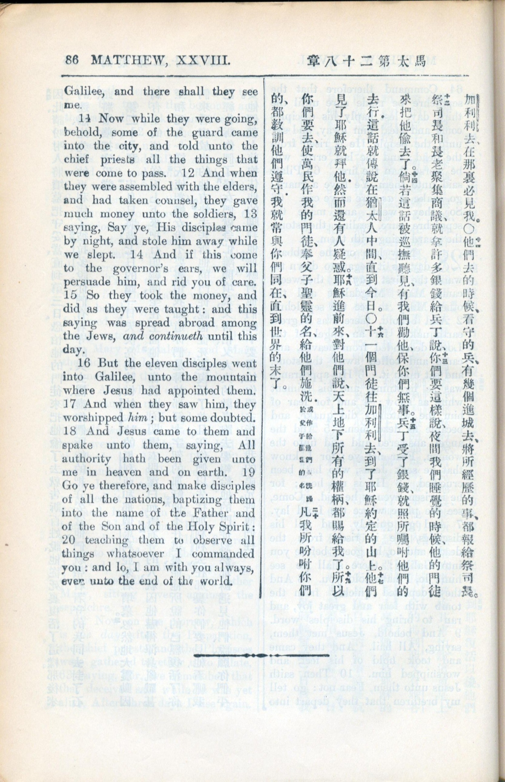 1936年新約全書 馬太福音 28 章 11 節到 28 章 20 節