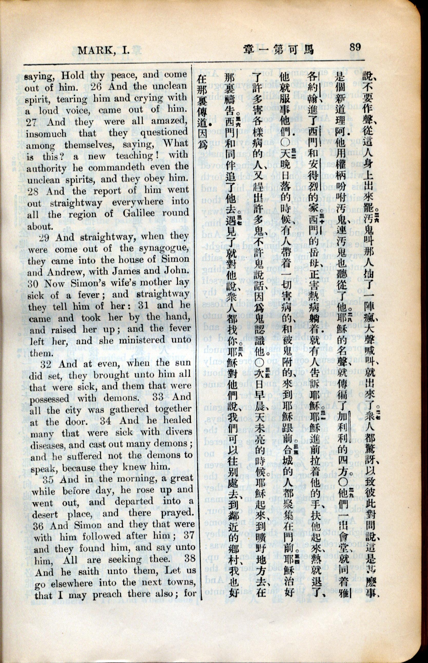 1936年新約全書 馬可福音 1 章 25 節到 1 章 38 節