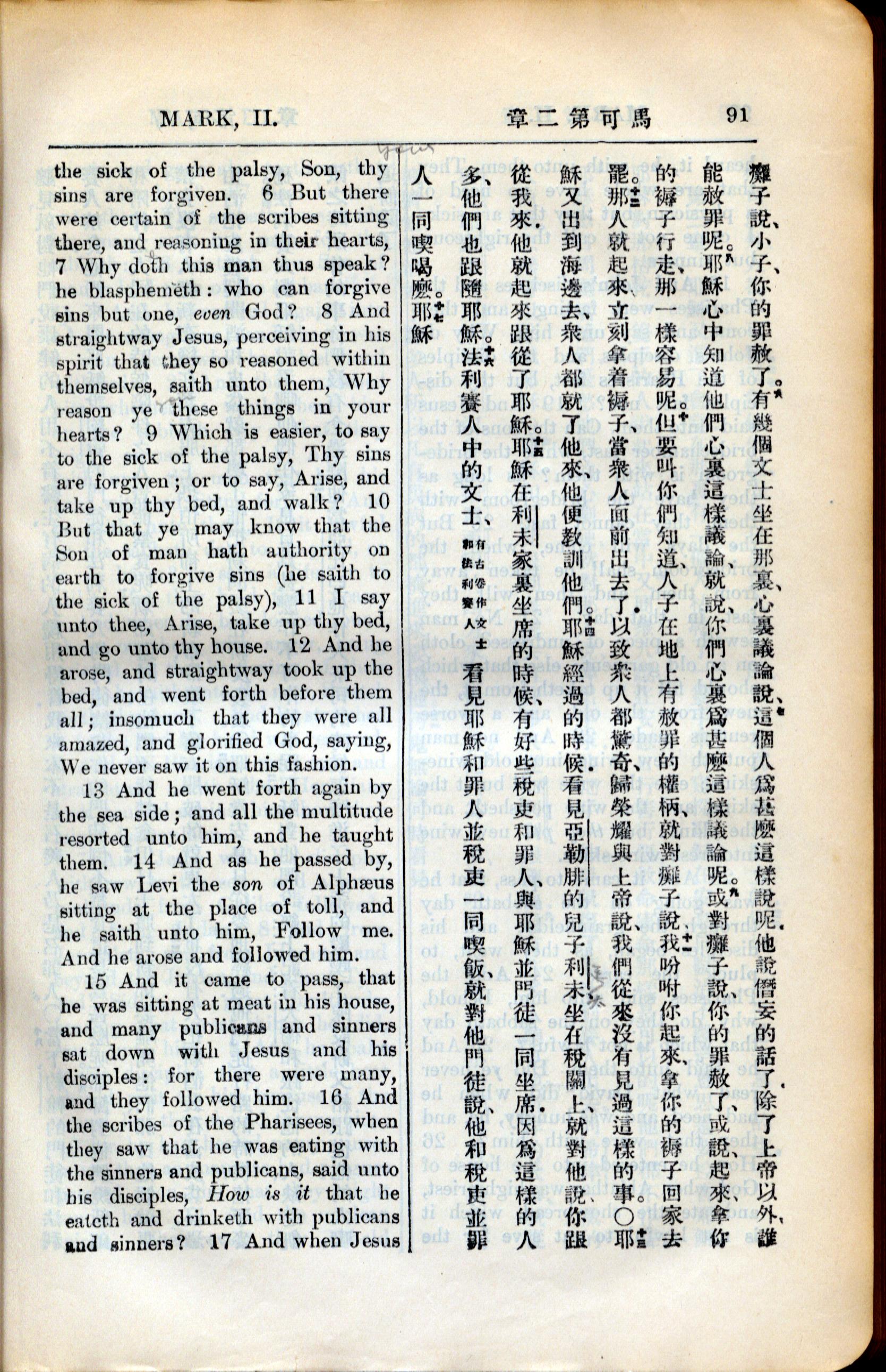 1936年新約全書 馬可福音 2 章 6 節到 2 章 16 節