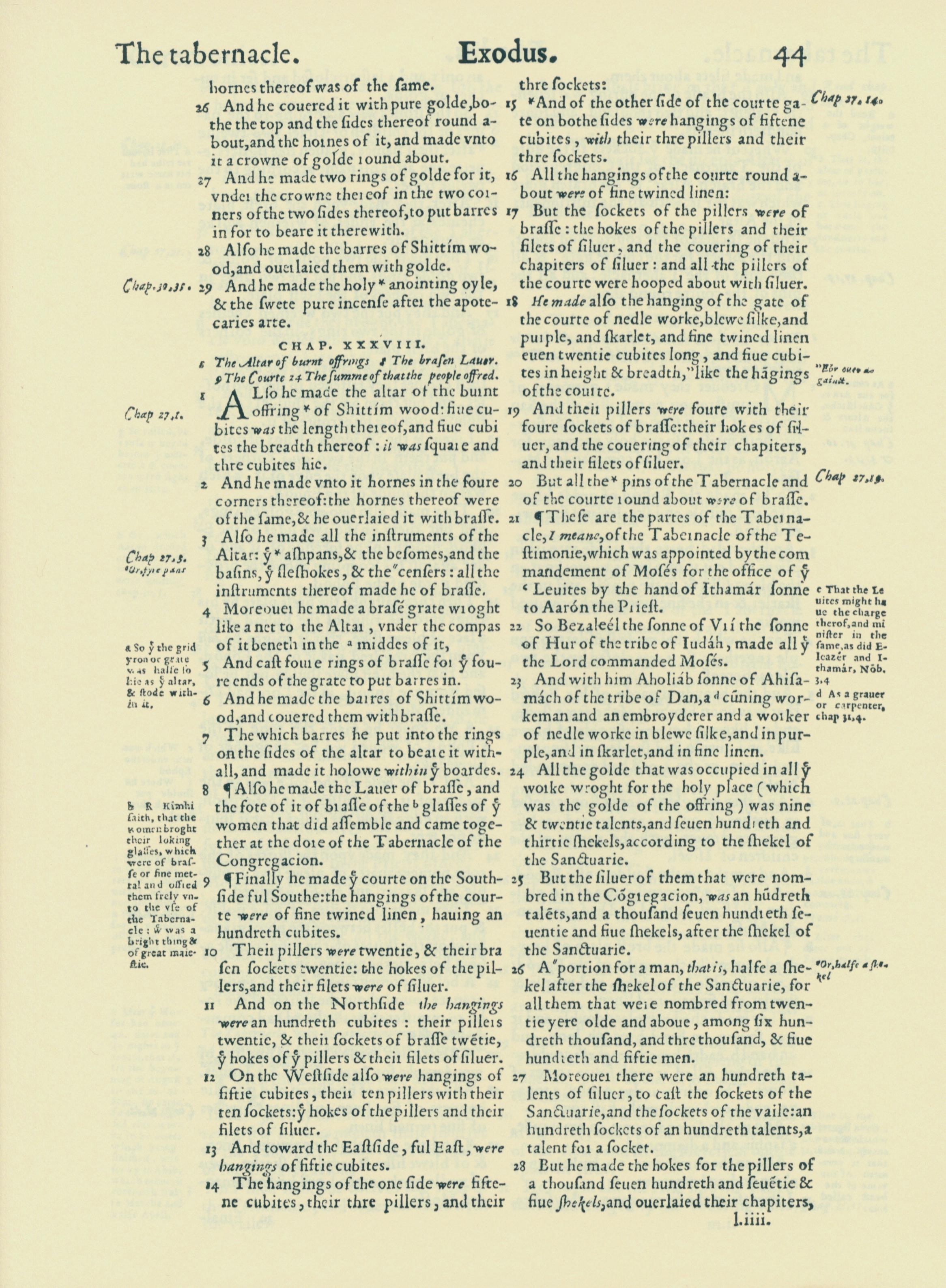 1560年THE BIBLE AND HOLY SCRIPTURES 出埃及記 37 章 26 節到 38 章 28 節