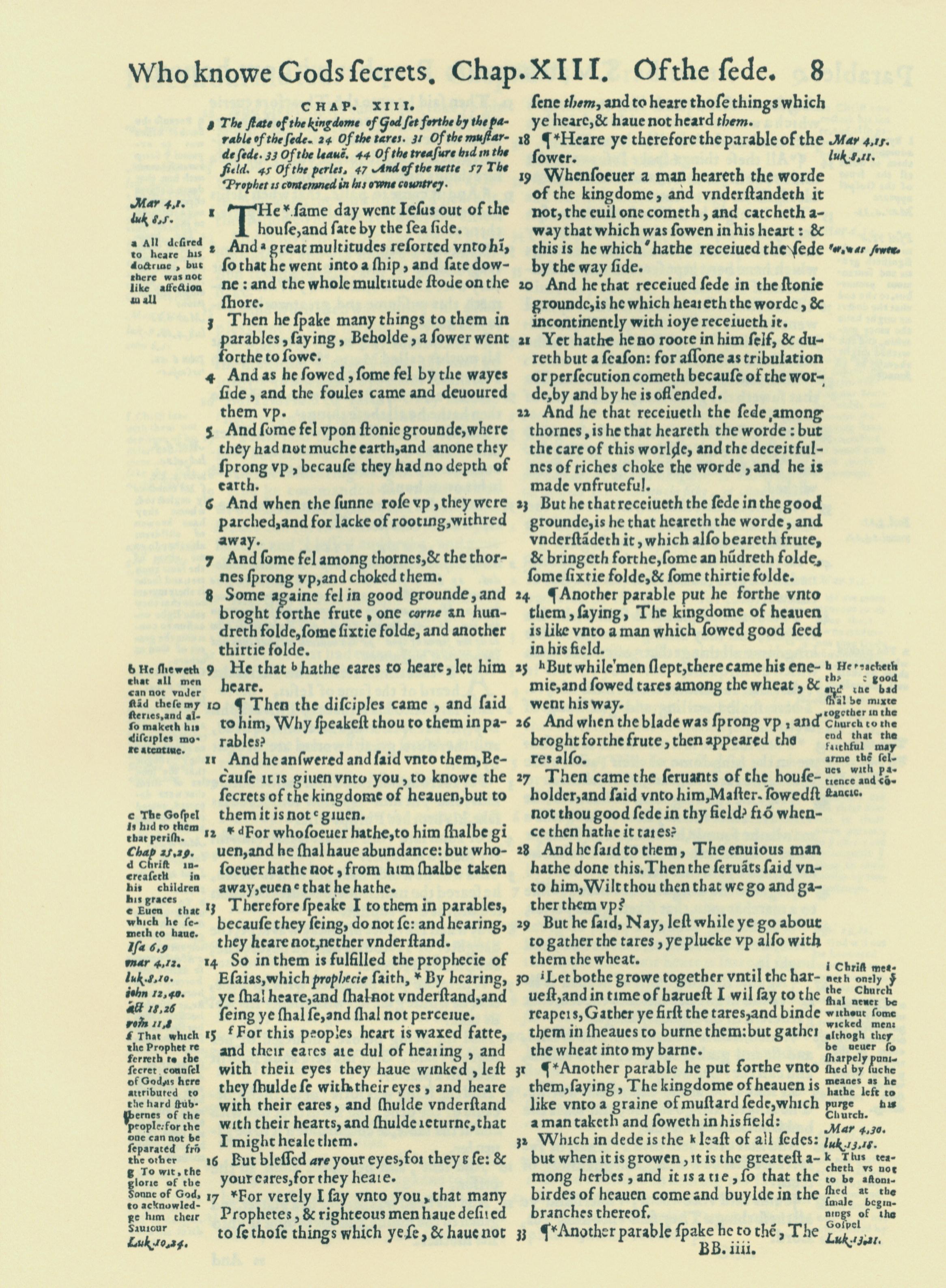 1560年THE BIBLE AND HOLY SCRIPTURES 馬太福音 13 章 1 節到 13 章 33 節