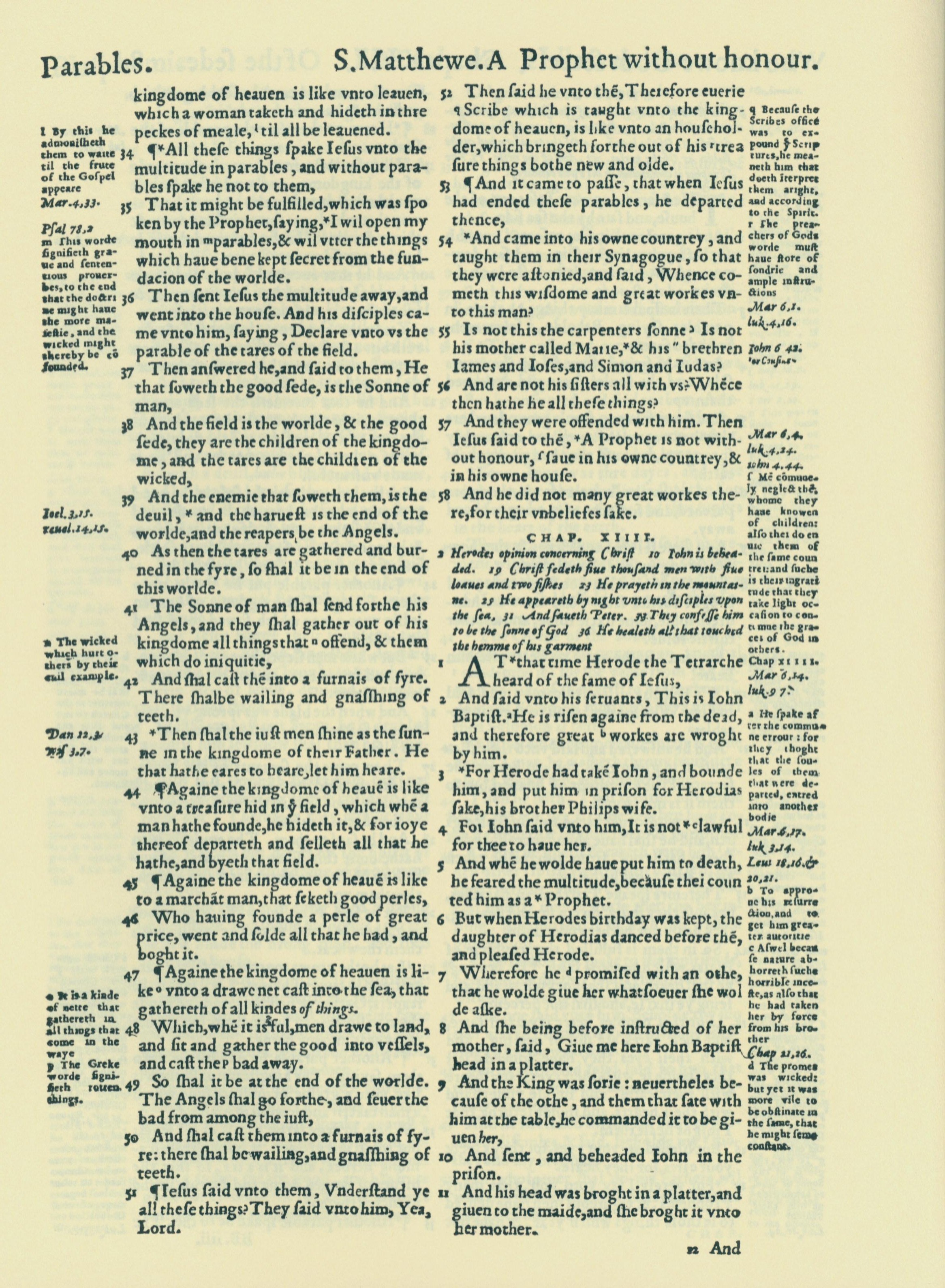 1560年THE BIBLE AND HOLY SCRIPTURES 馬太福音 13 章 34 節到 14 章 11 節