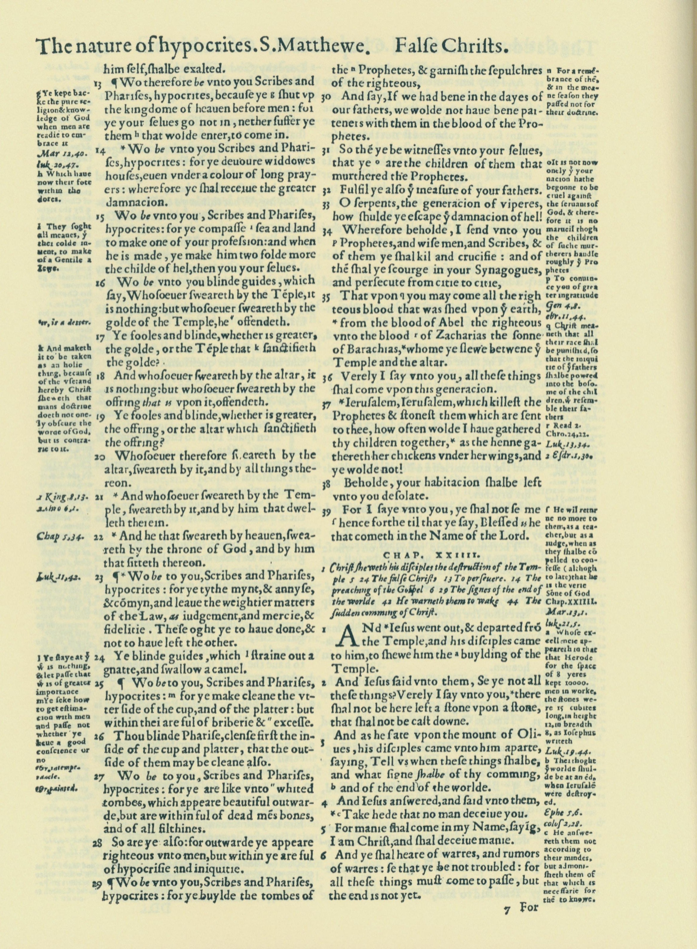 1560年THE BIBLE AND HOLY SCRIPTURES 馬太福音 23 章 13 節到 24 章 6 節