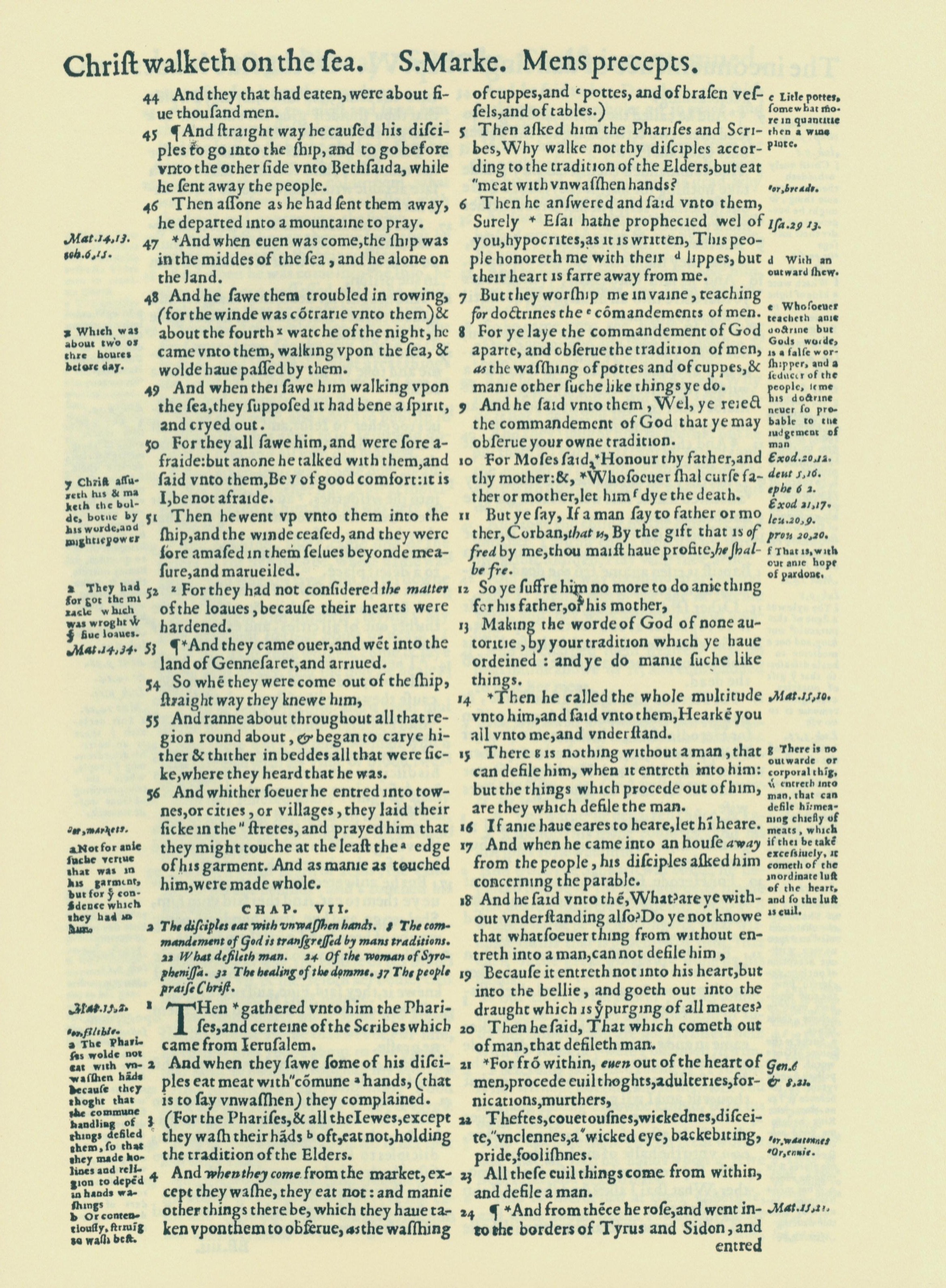 1560年THE BIBLE AND HOLY SCRIPTURES 馬可福音 6 章 44 節到 7 章 24 節