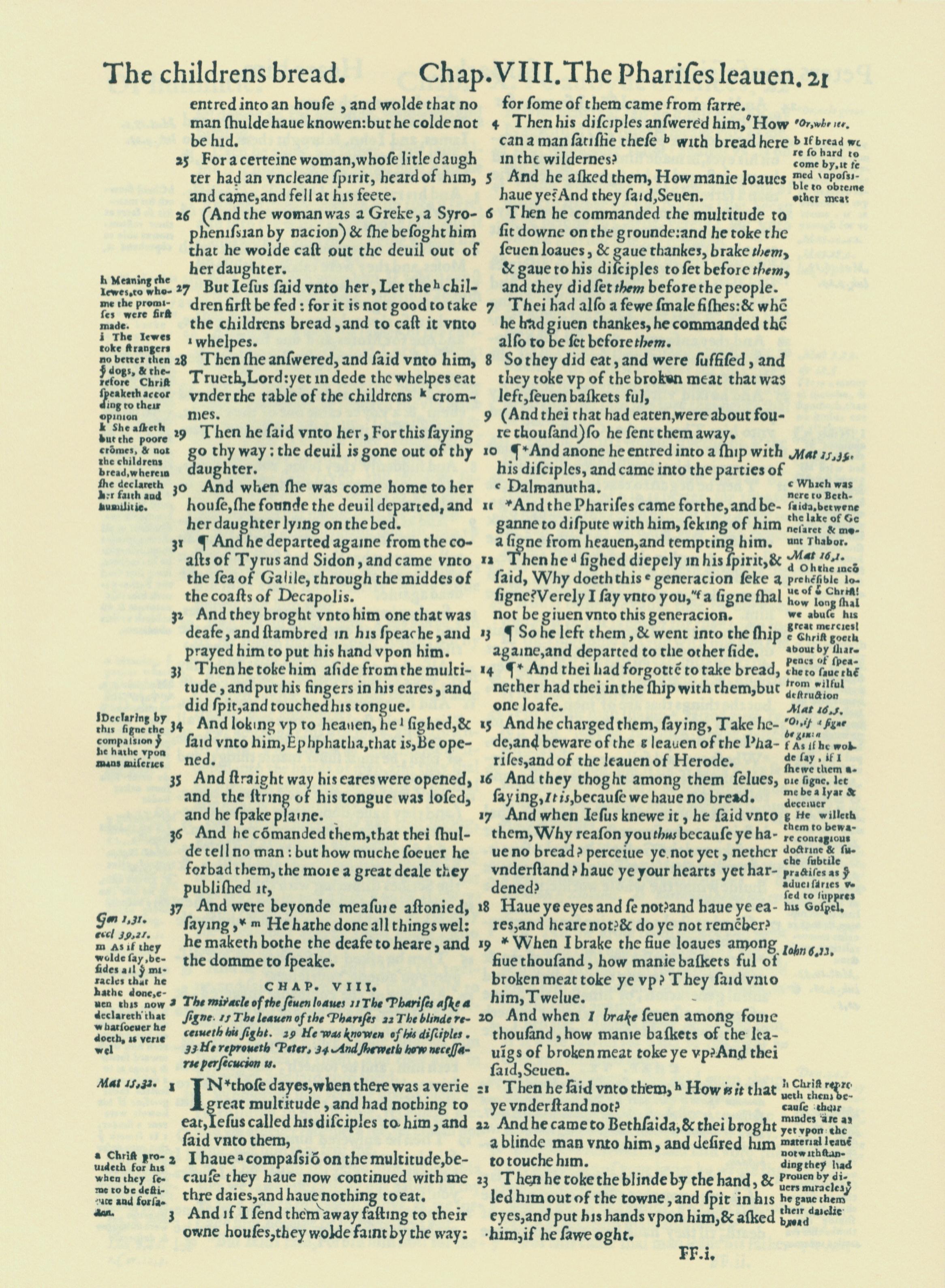 1560年THE BIBLE AND HOLY SCRIPTURES 馬可福音 7 章 25 節到 8 章 23 節